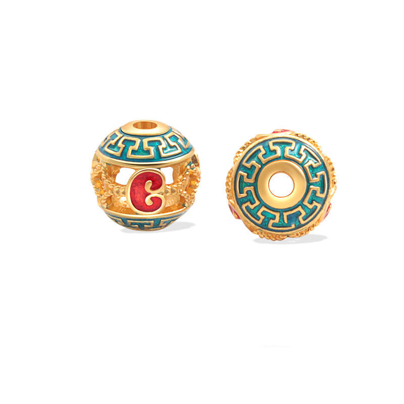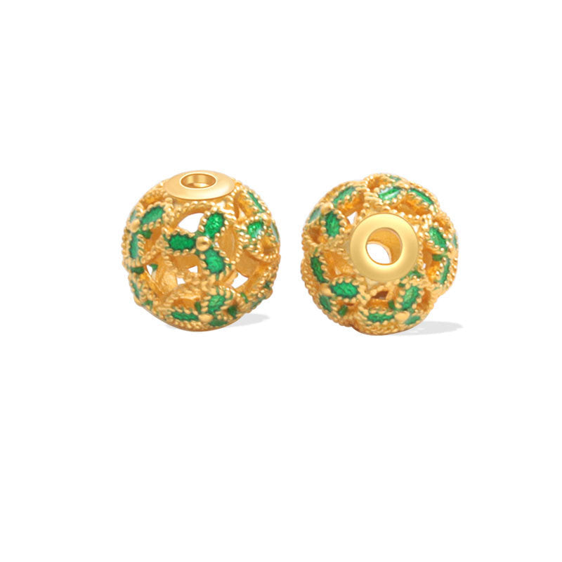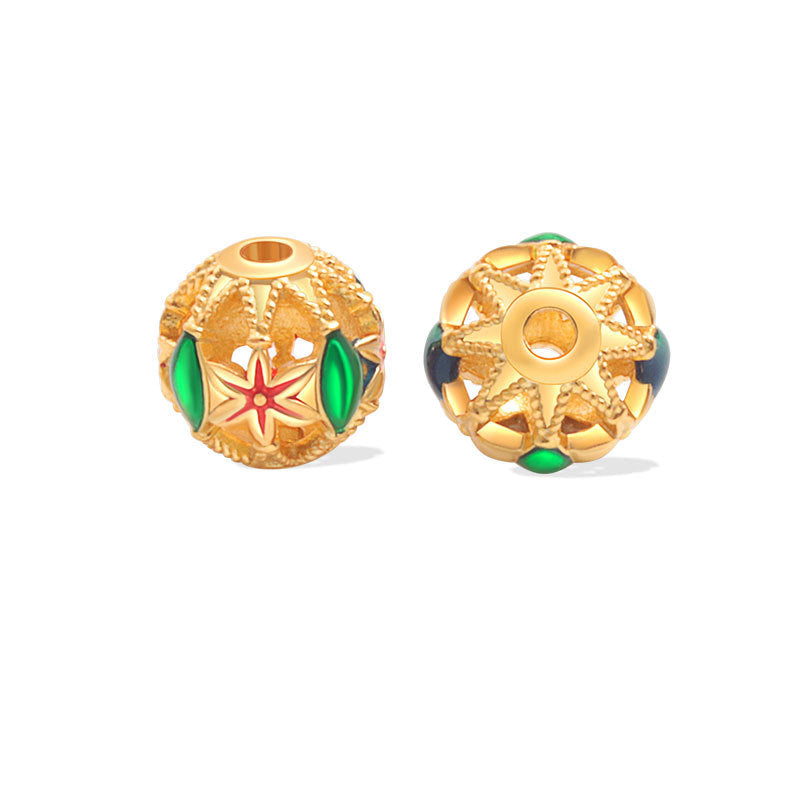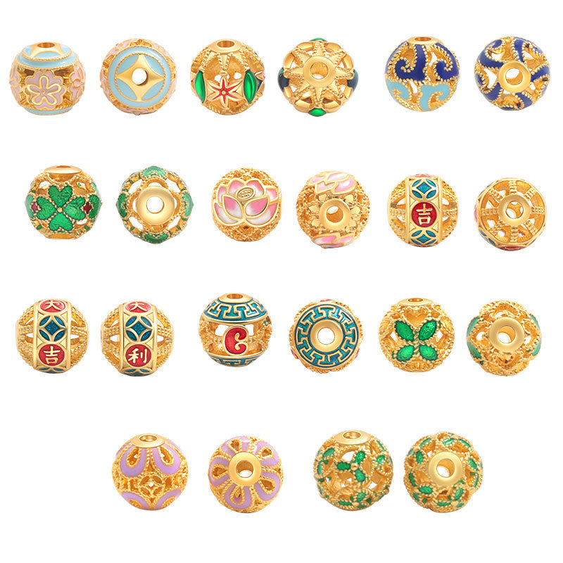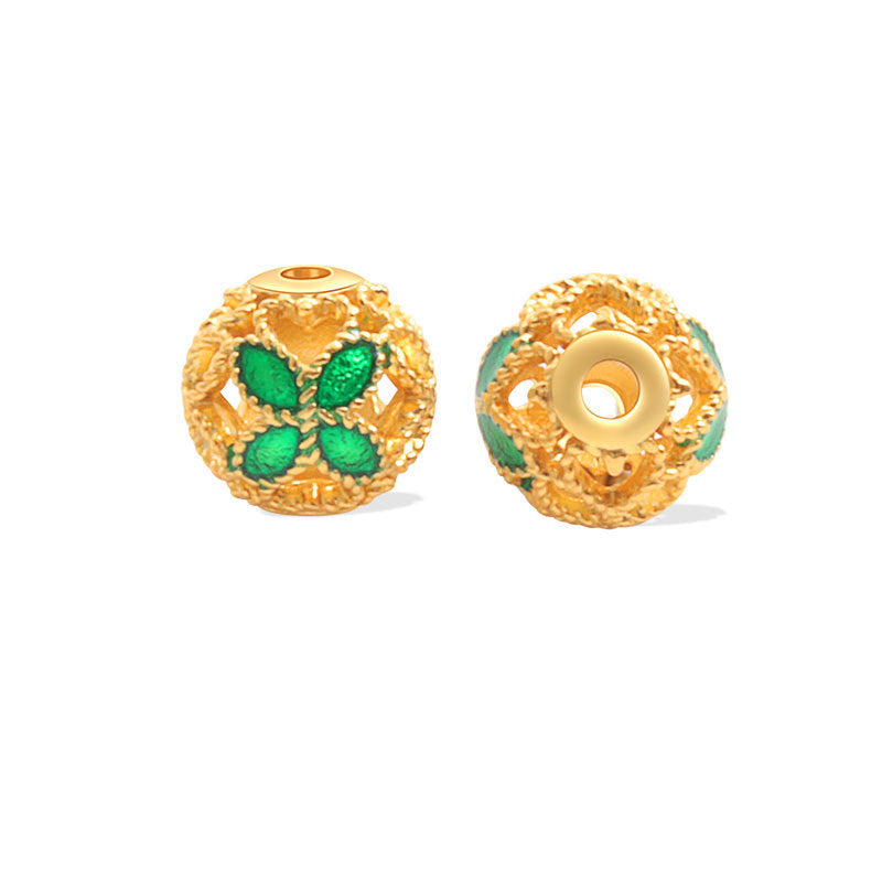 Wholesale S925 sterling silver ancient gold matte oil dripping blue enamel beads