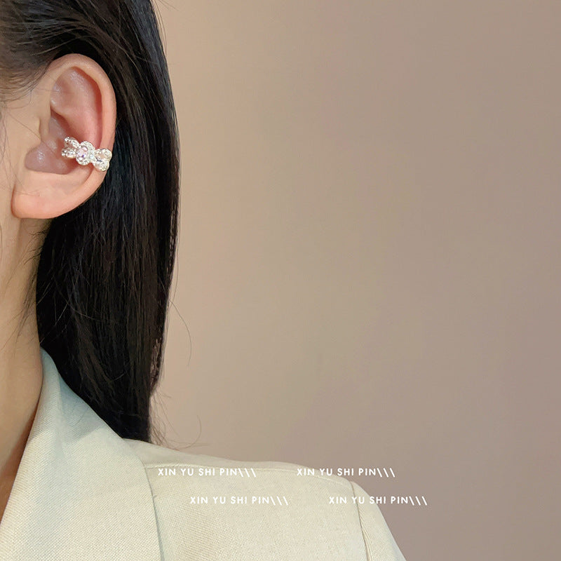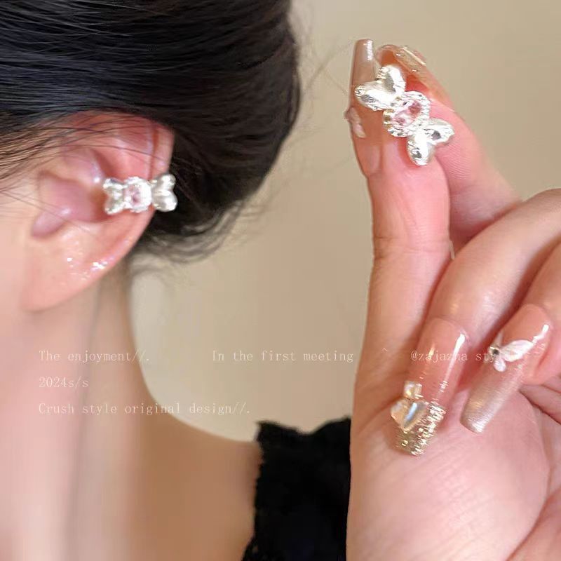 Wholesale Pink Zircon Bow Ear Clip Earrings