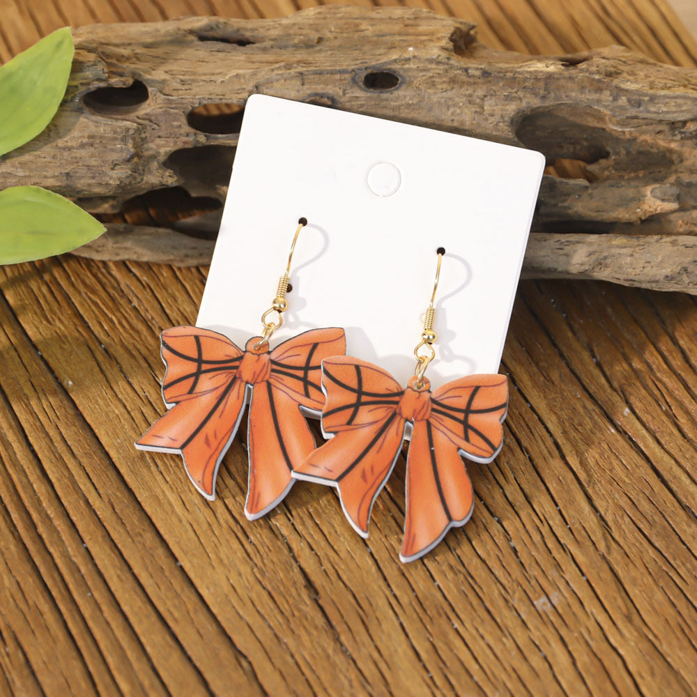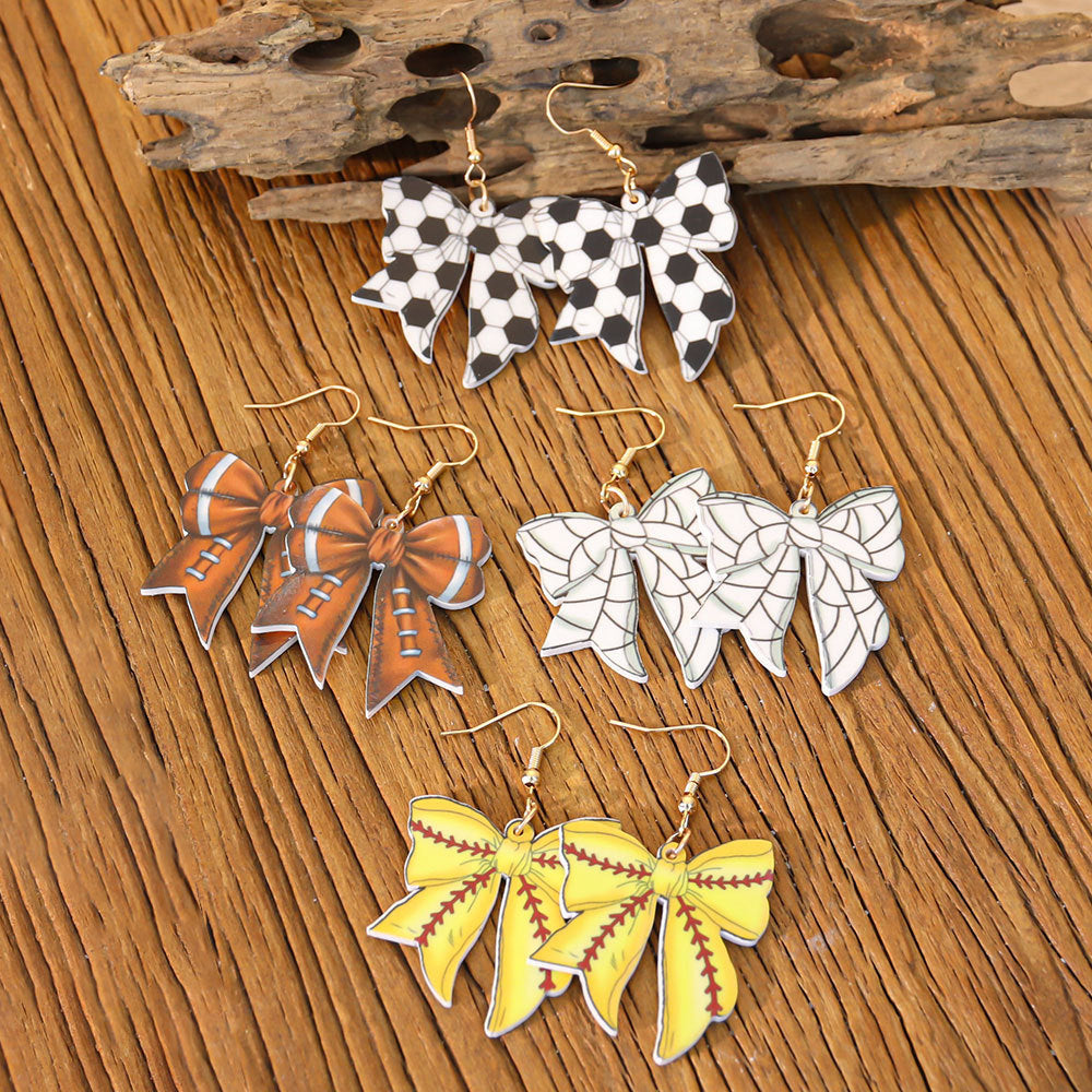 Wholesale Sports style football and rugby bow earrings
