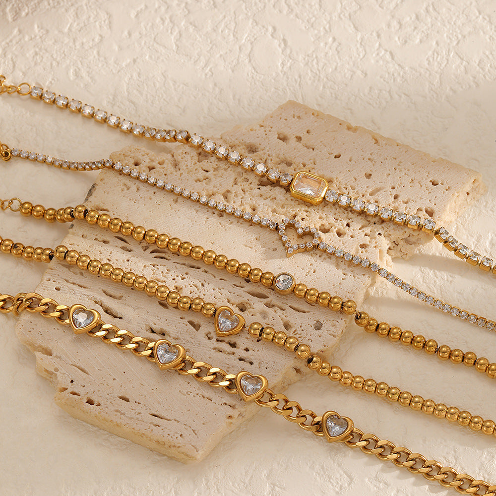 Wholesale Fade-Resistant Stainless Steel Full-Diamond Tennis Bracelet