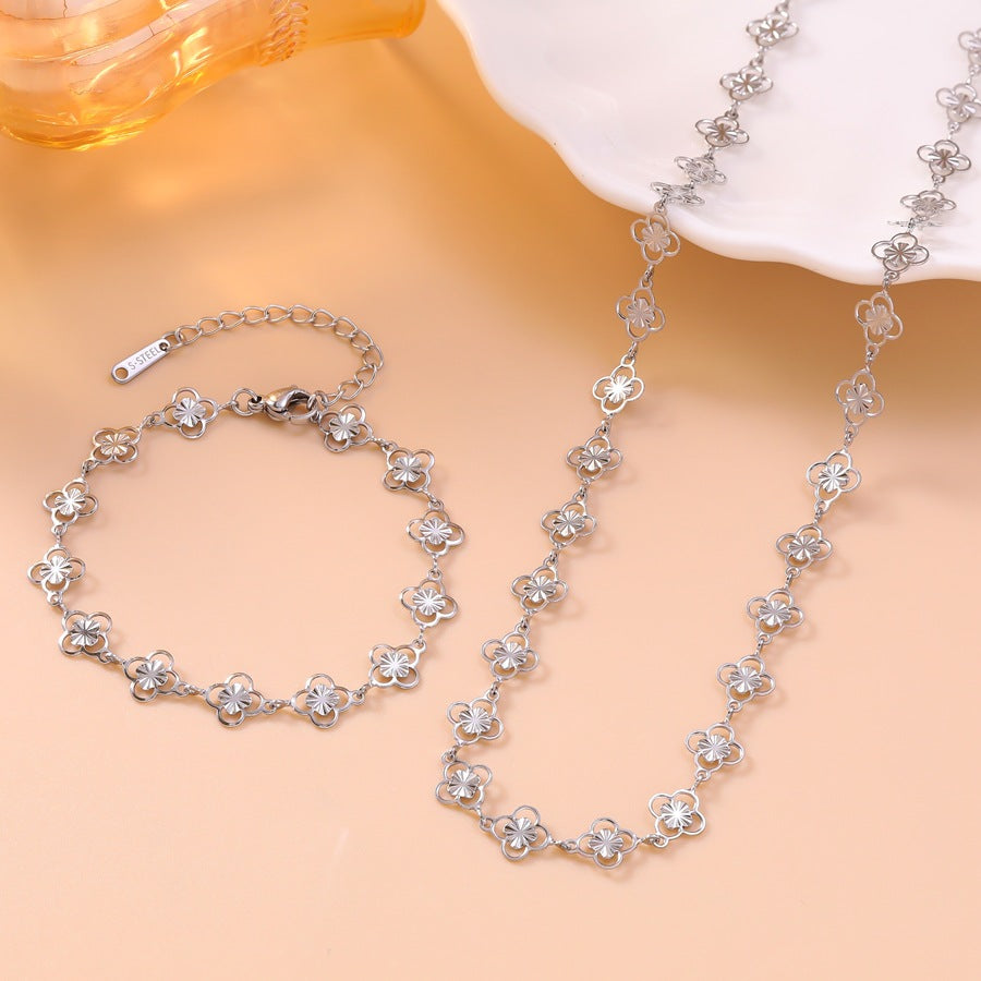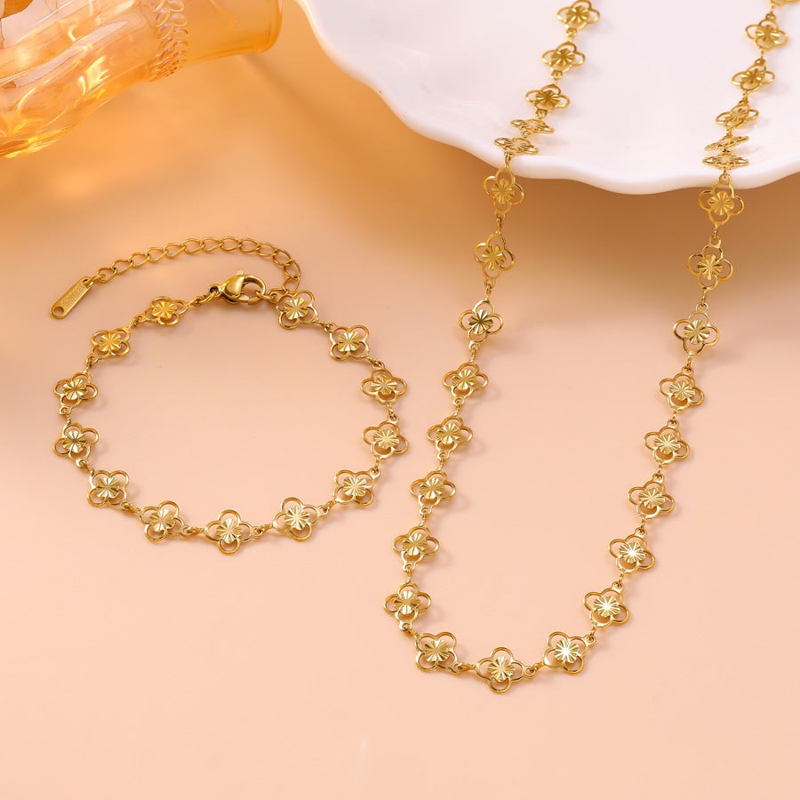 Wholesale Openwork floral four-leaf clover bracelet and necklace