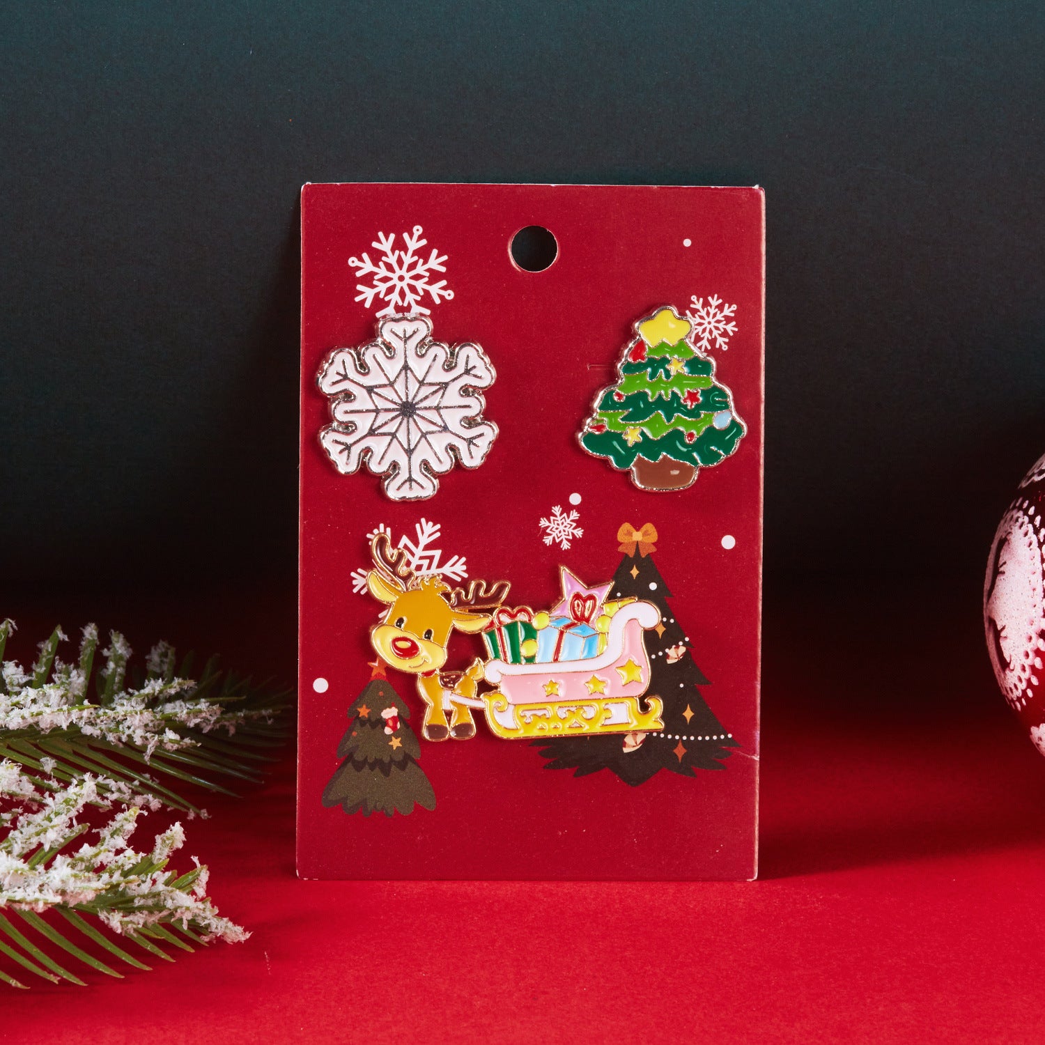 Wholesale Elk Christmas Tree Snowflake Brooch 3-Piece Set