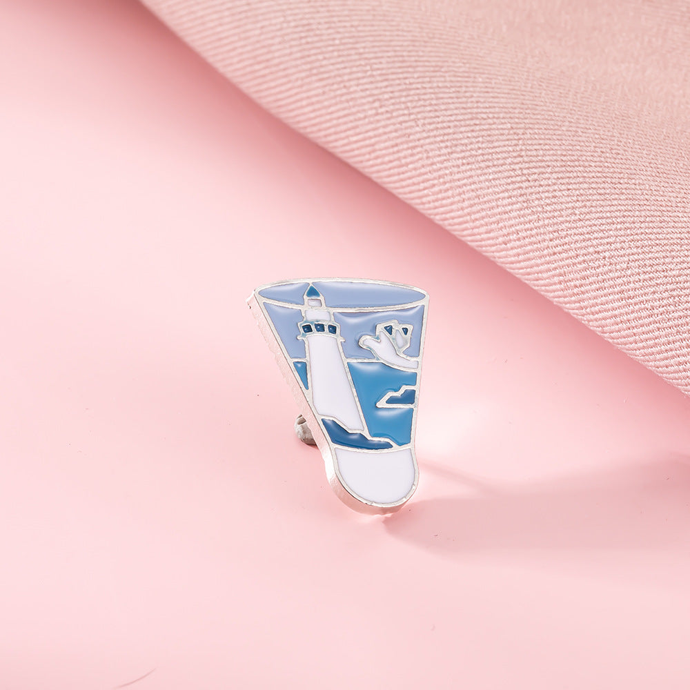 Wholesale sea lighthouse blue sky alloy badminton shape brooch