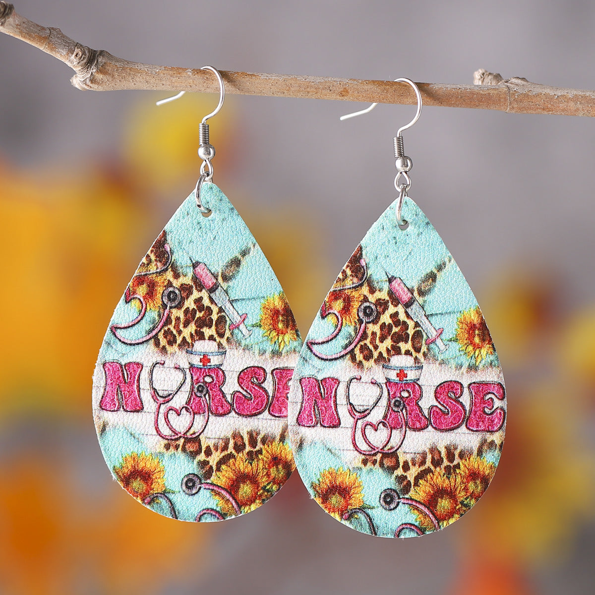 Wholesale Nurses' Day Western-Style Leopard Print Leather Dangle Earrings