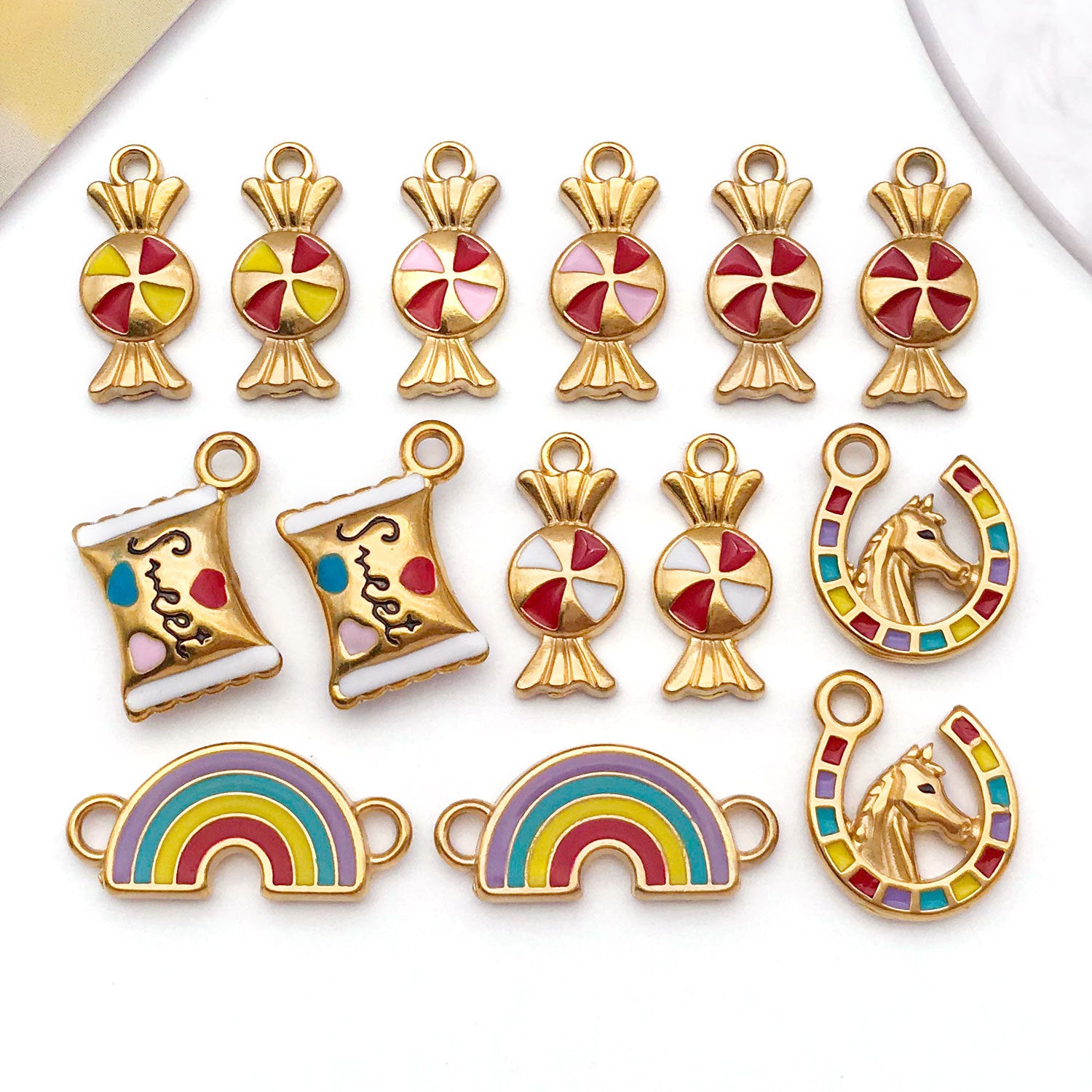 Wholesale Stainless steel enamel butterfly knot candy Western cowboy horse head Charms