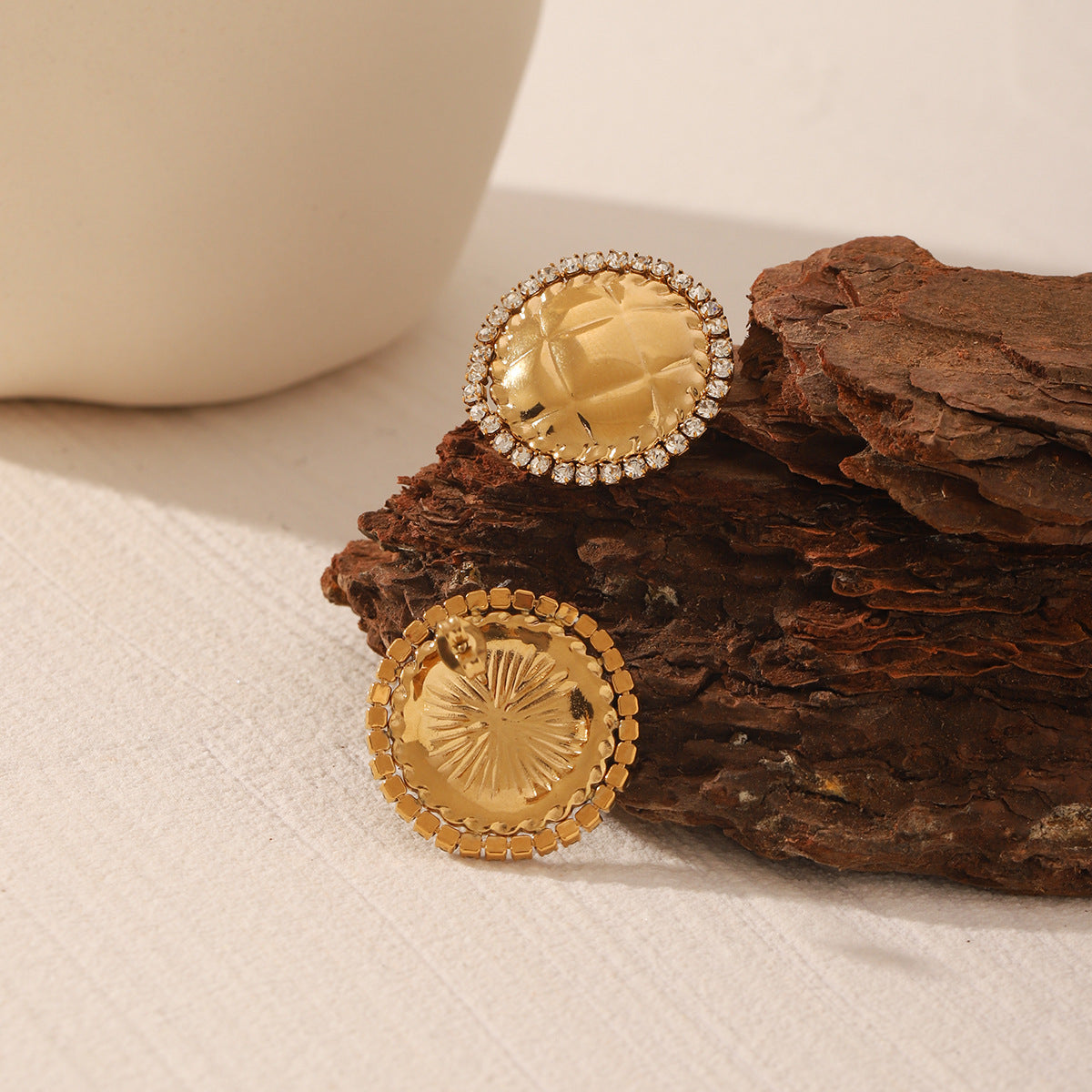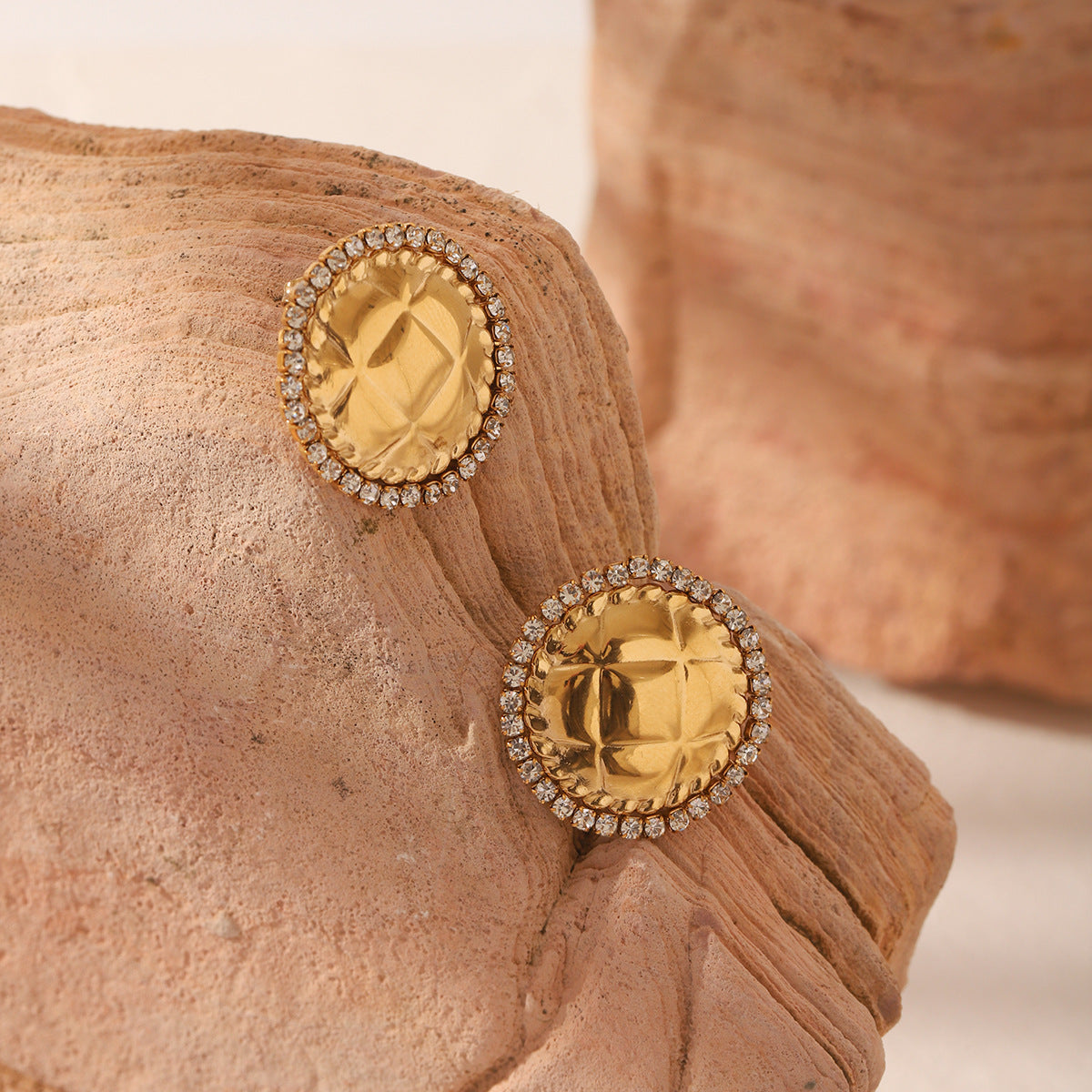 Wholesale diamond round earrings women's stainless steel plated 18K gold stud earrings