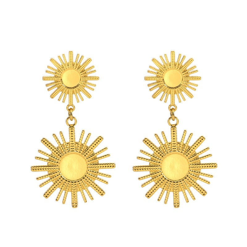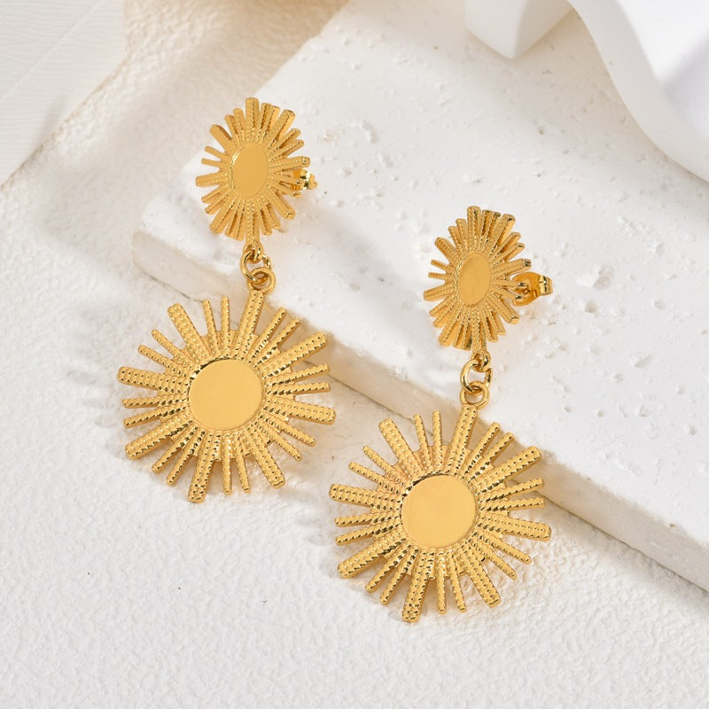 Wholesale 2PCS Stainless Steel Sun Leaf and Ginkgo Leaf Earrings