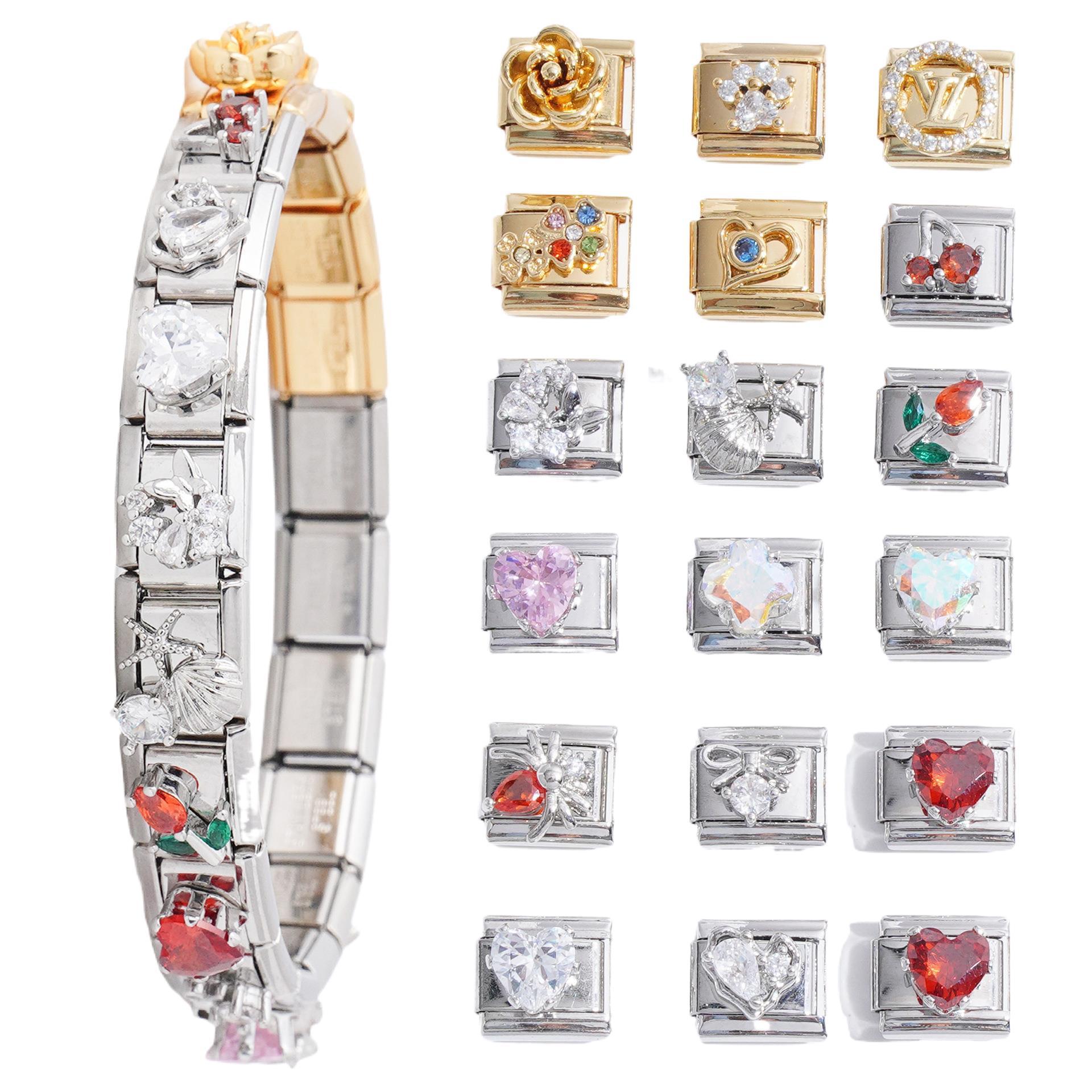 Wholesale 2PCS 9mm Italian Charm Starter Bracelets DIY square Single Section Creative Stainless Steel Composable Bracelet