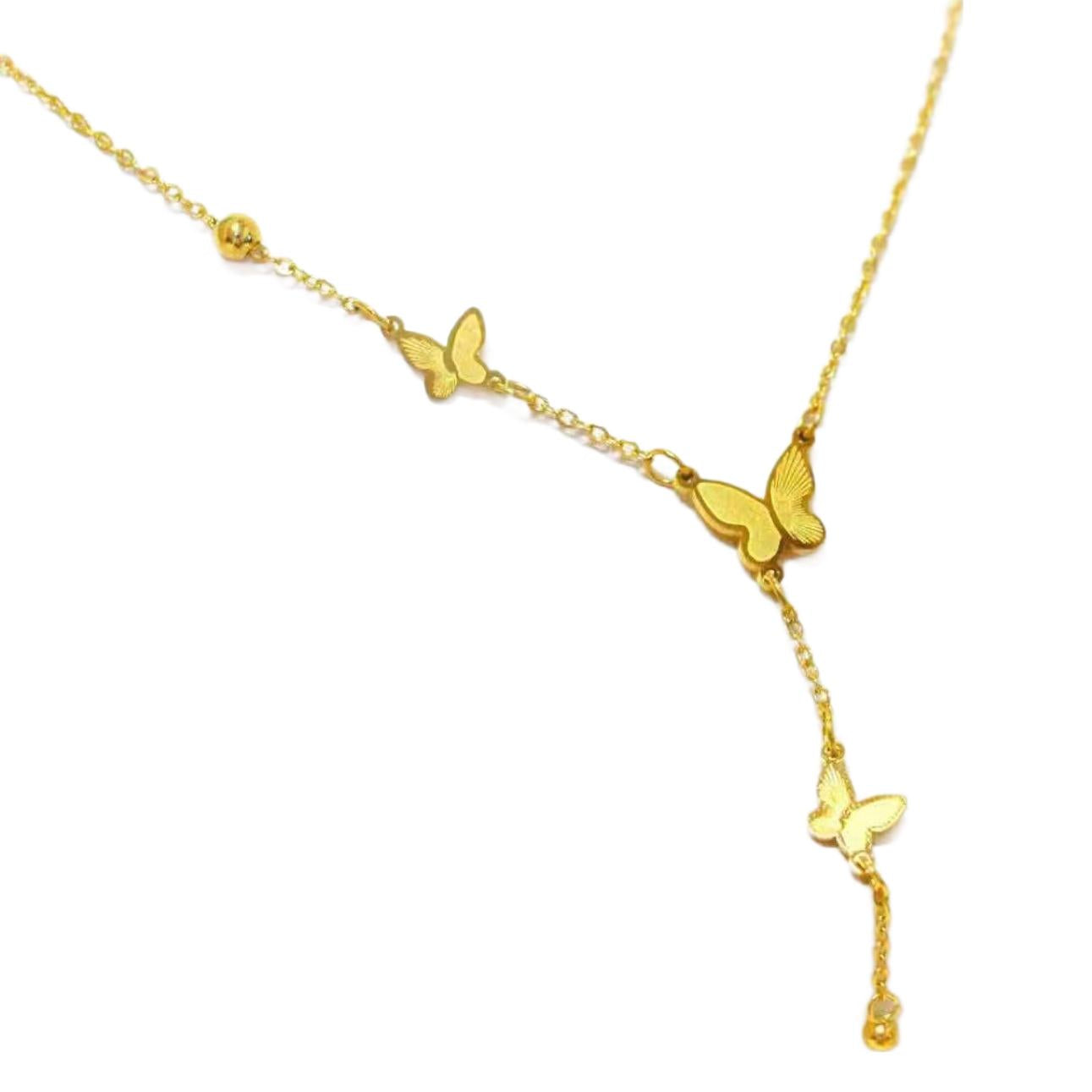 Wholesale Butterfly Necklace Titanium Steel PVD Electroplated Y Type Long Exquisite Butterfly Tassel Pendant Necklace