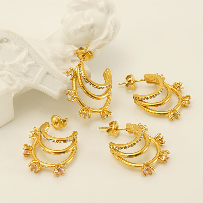 Wholesale creative temperament inlaid zircon stainless steel non-fading earrings