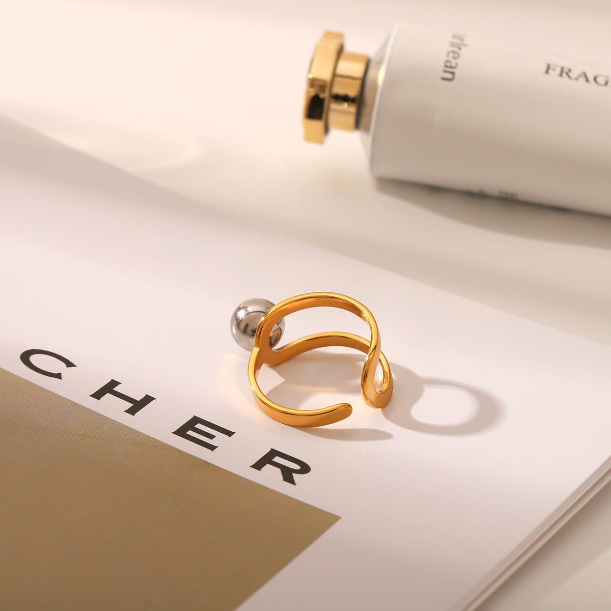Wholesale Geometric high-grade stainless steel gold and silver two-tone ring