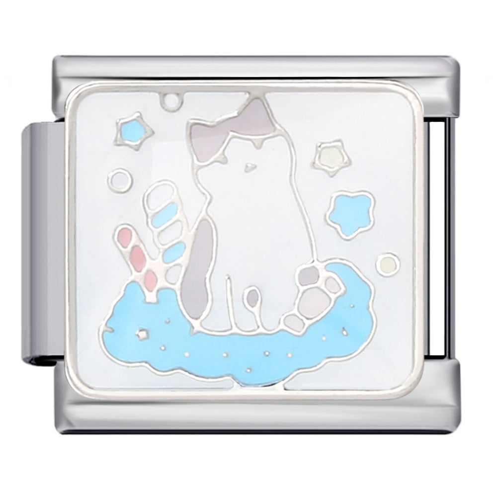 Wholesale Italian Charm Bracelet 9mm DIY Hook-Shaped Colorful Oil-Drip Creative Stainless Steel Composable Bracelet