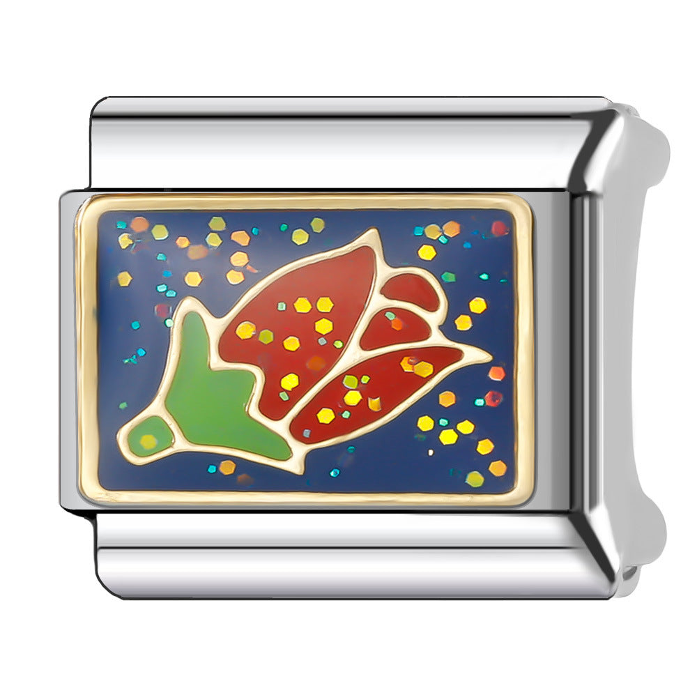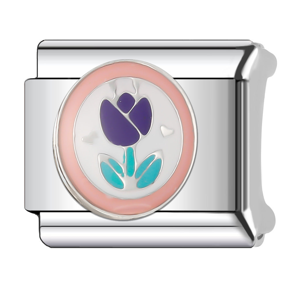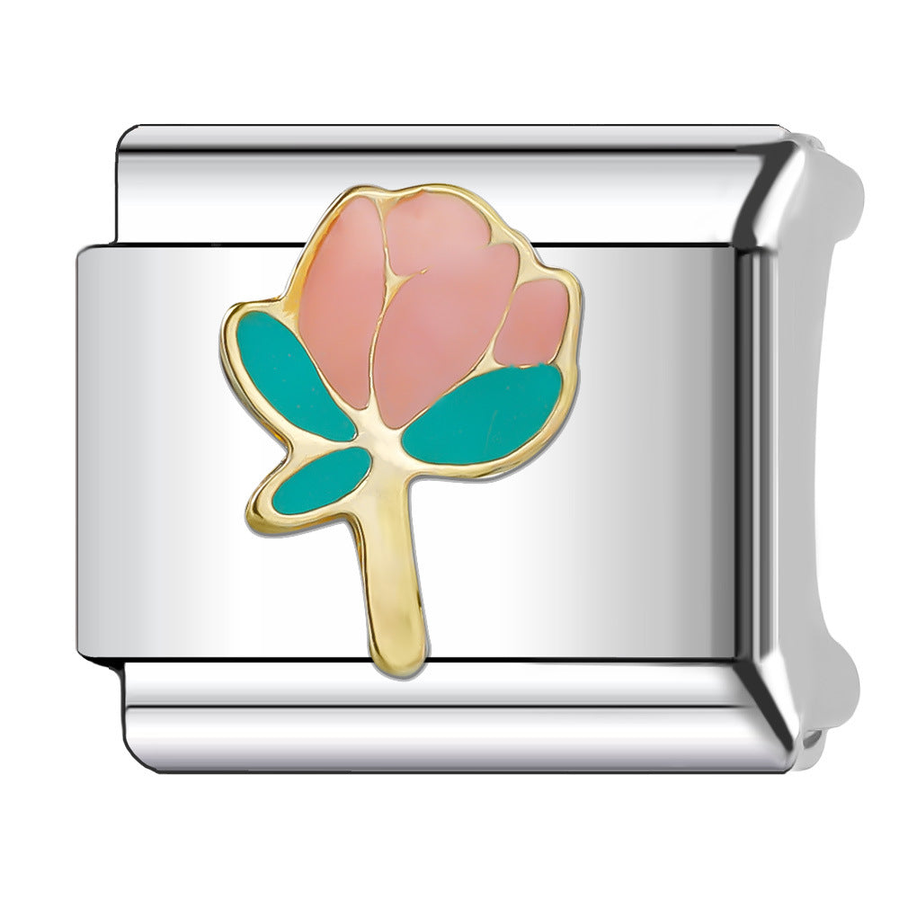 Wholesale Italian Charm Bracelet 9mm DIY Splicing Flower Series Stainless Steel Composable Bracelet