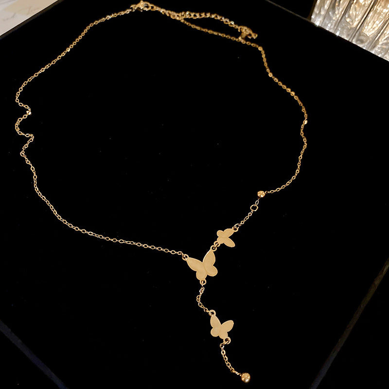Wholesale Simple Metallic Titanium Steel Butterfly Collarbone Necklace