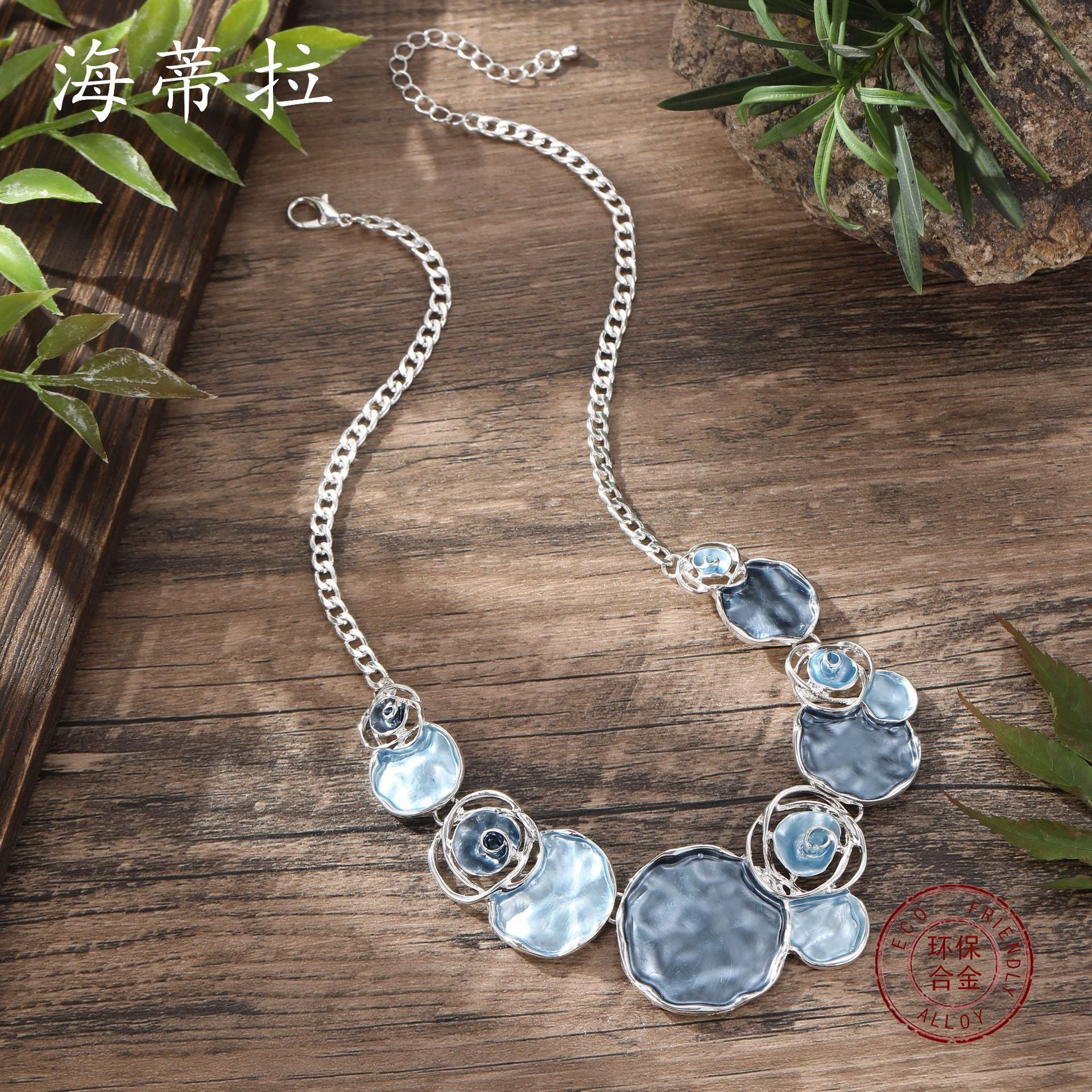 Wholesale color painting oil rose necklace geometric hollow rose color necklace