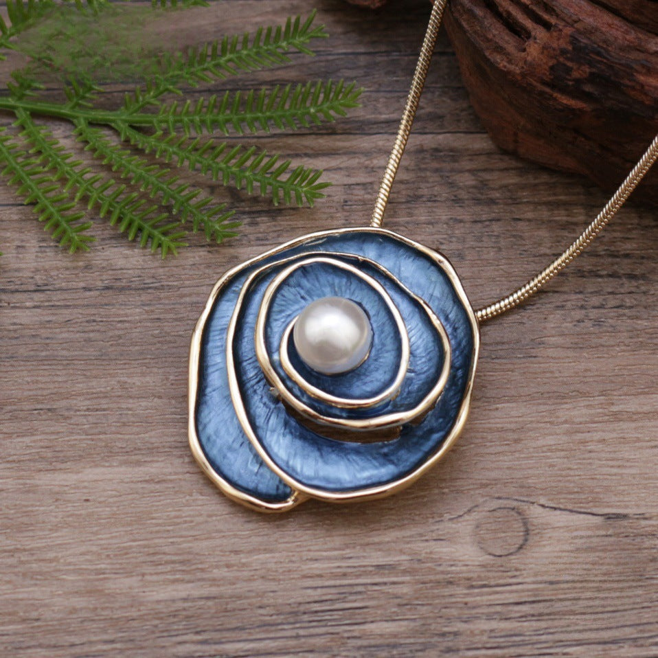 Wholesale Rose Flower Necklace Colorful Painted Pearl Jewelry Accessory