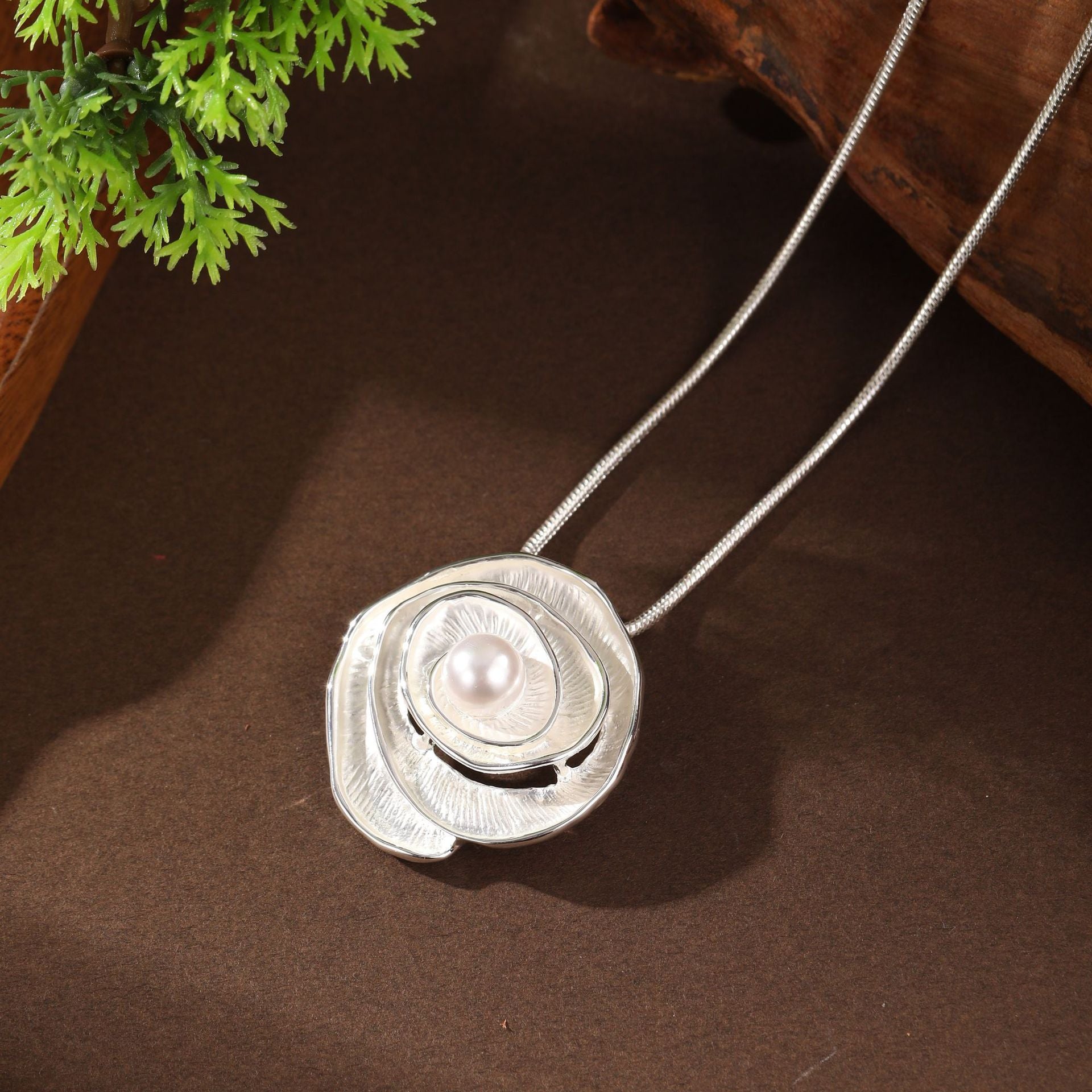 - White rose pearl pendant-silver