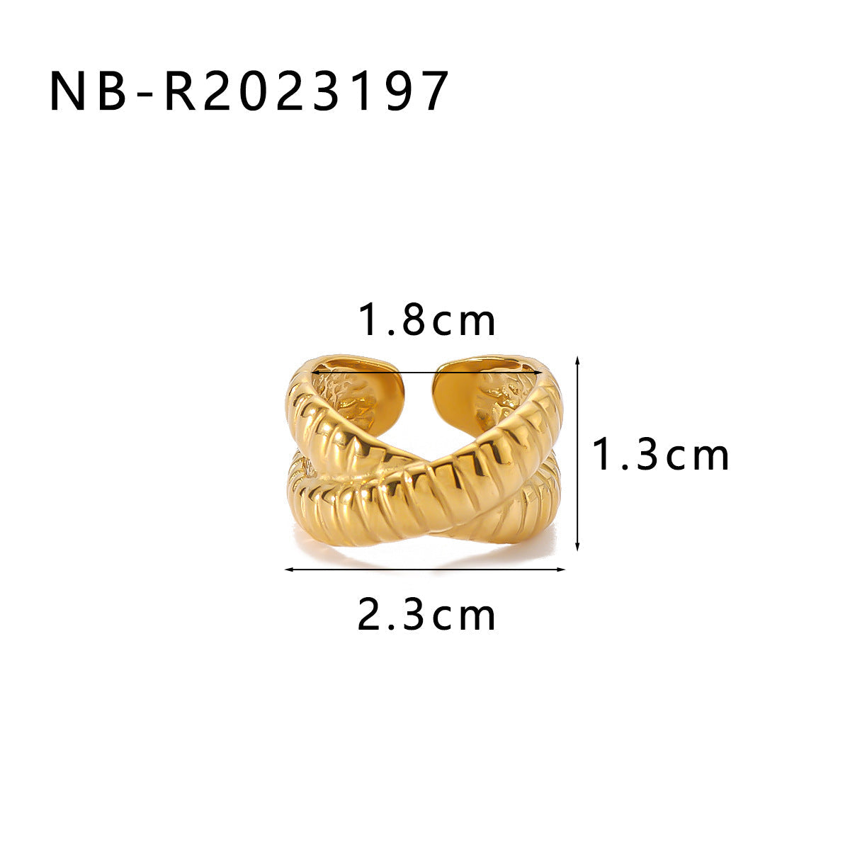 Wholesale Hammered Geometric Titanium Steel 18K Gold Plated Ring