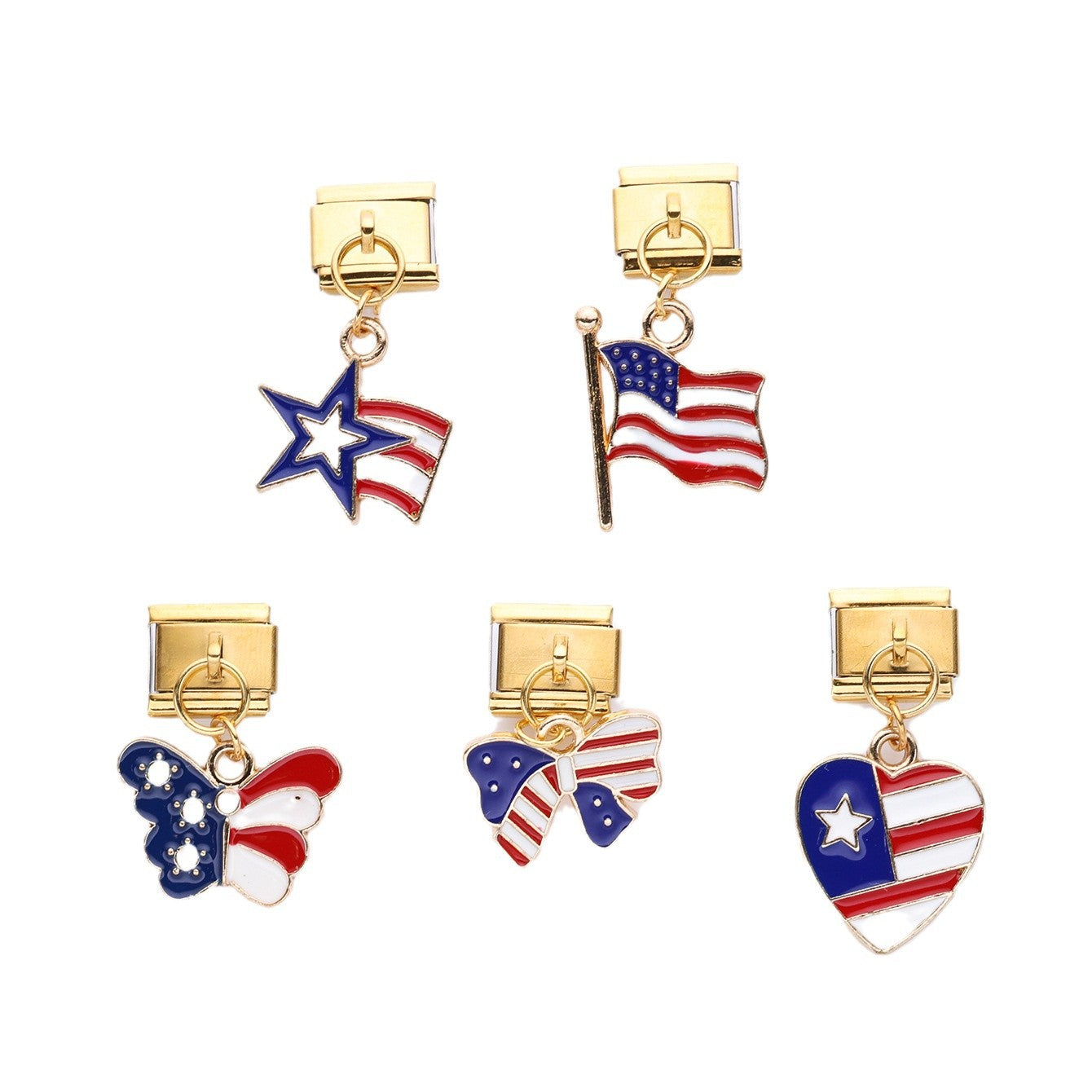 Wholesale 10pcs Italian Charm Bracelet 9mm DIY Splicing American Flag Series Stainless Steel Composable Bracelet