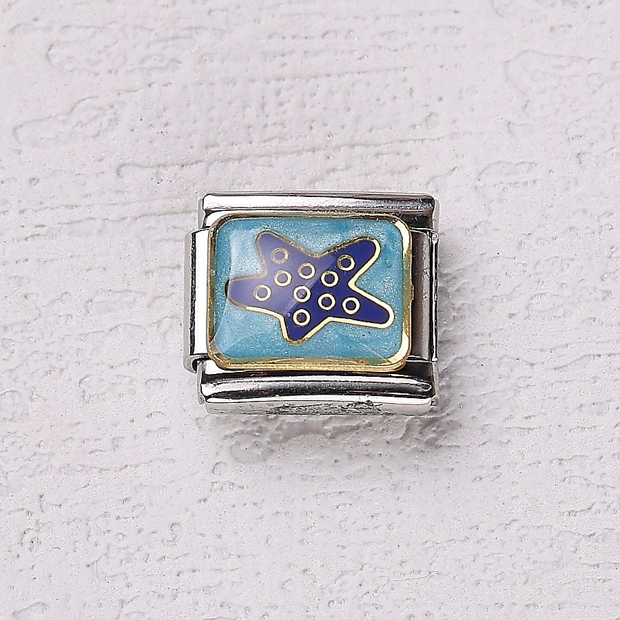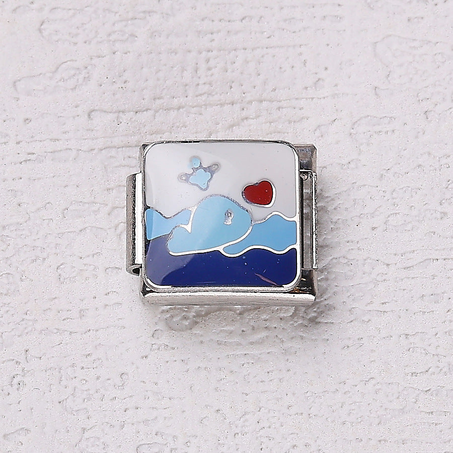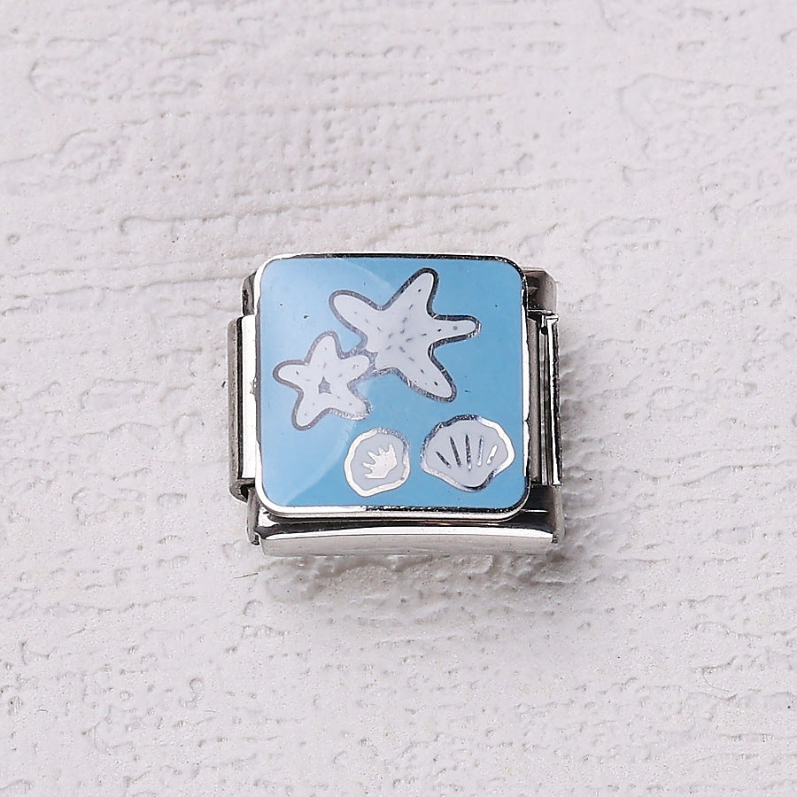 Wholesale 10pcs Italian Charm Bracelet 9mm DIY Splicing Blue Ocean Elements Stainless Steel Composable Bracelet