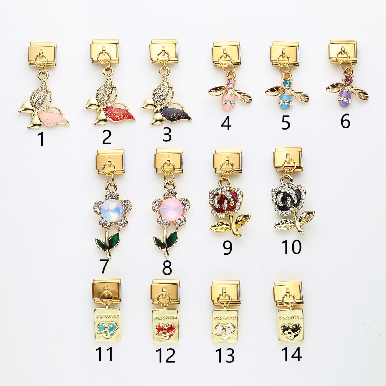 Wholesale 10pcs Italian Charm Bracelet 9mm DIY Splicing Butterfly Bee Stainless Steel Composable Bracelet