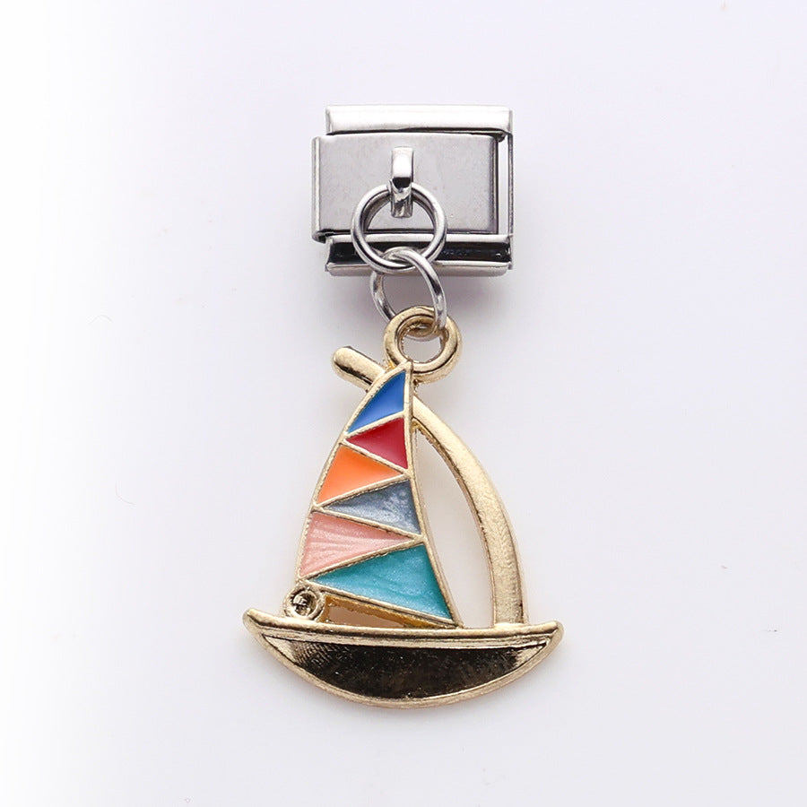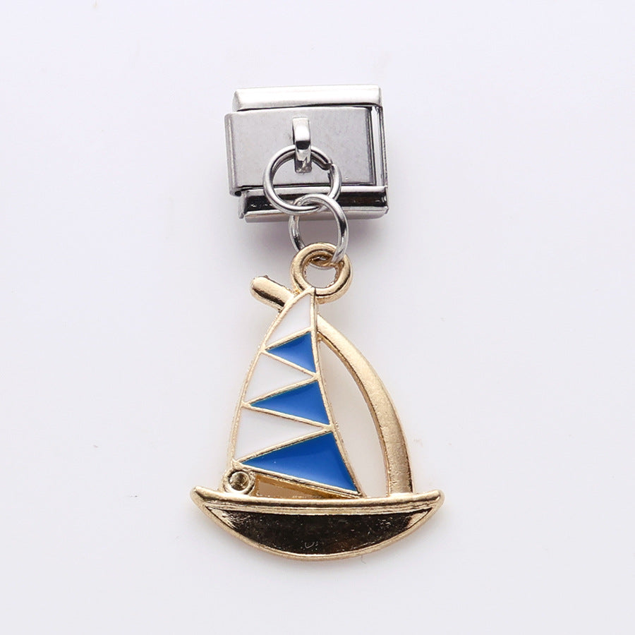 Wholesale 10pcs Italian Charm Bracelet 9mm DIY Splicing Butterfly Sailboat Seahorse Stainless Steel Composable Bracelet