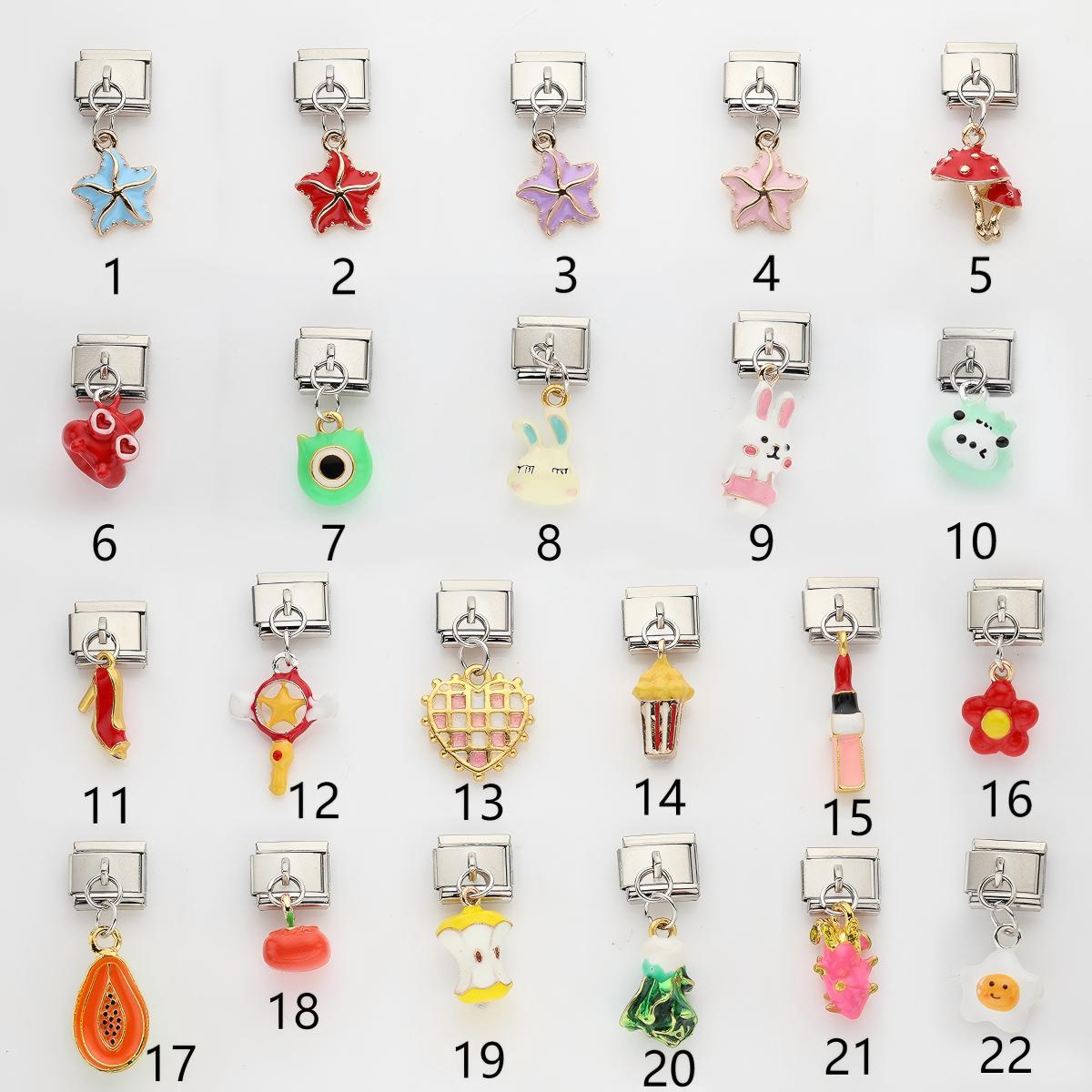 Wholesale 10pcs Italian Charm Bracelet 9mm DIY Splicing Starfish Fruit Lipstick Cartoon Stainless Steel Composable Bracelet