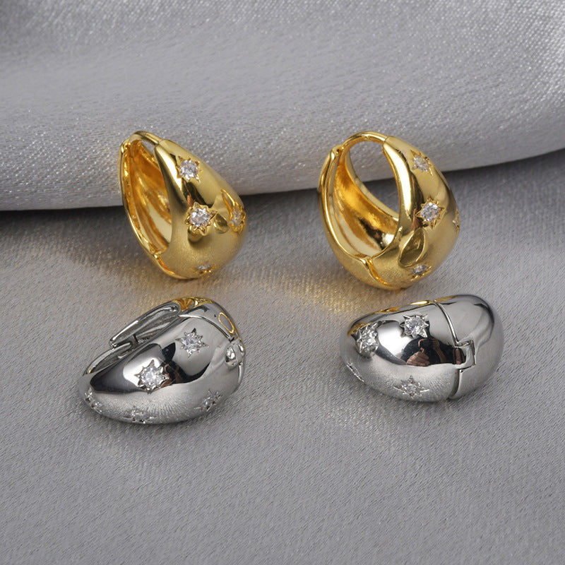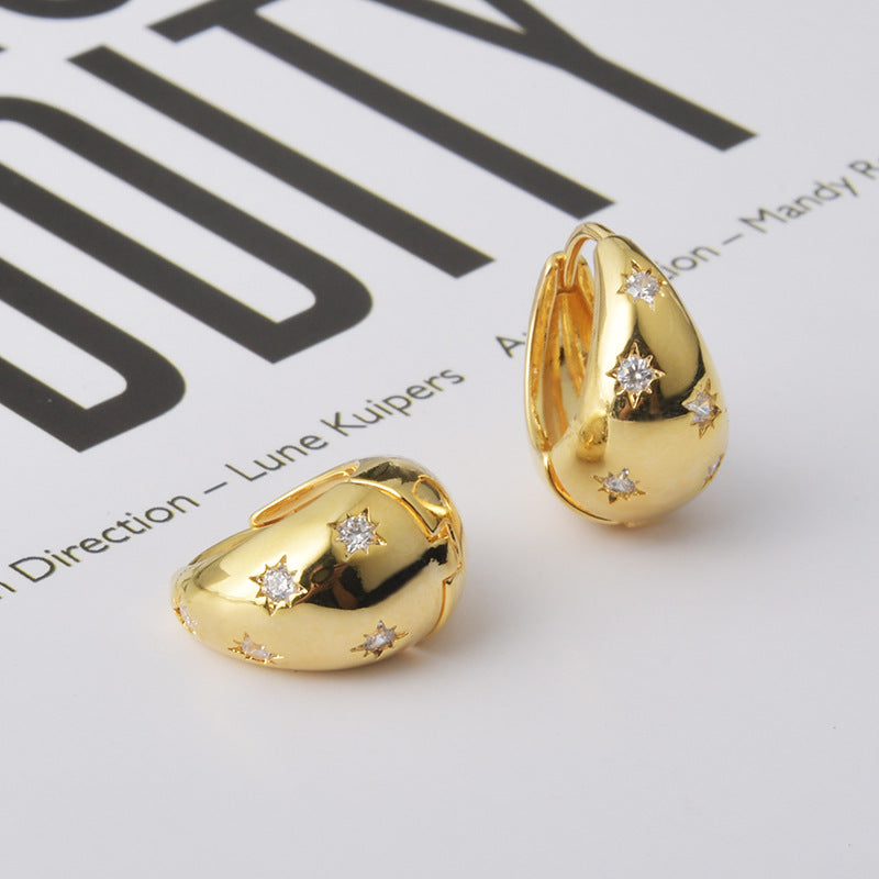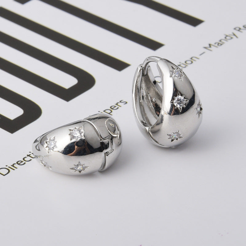 Wholesale Retro Exquisite Personalized Round Eight-Pointed Star Zircon Earrings