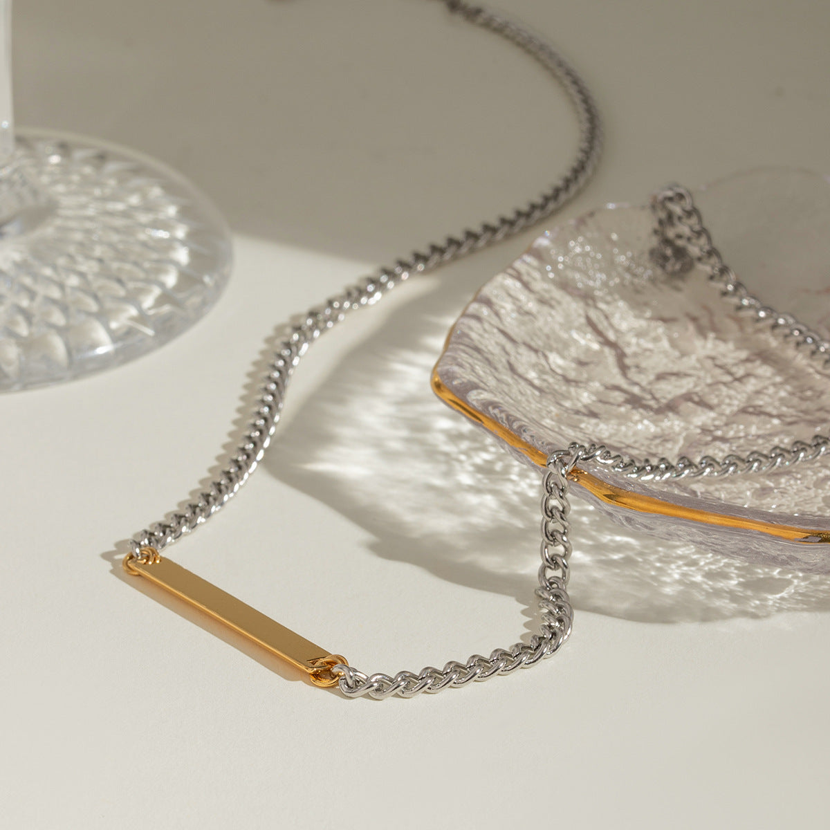 Wholesale 18k gold stainless steel color square smooth pendant color matching necklace