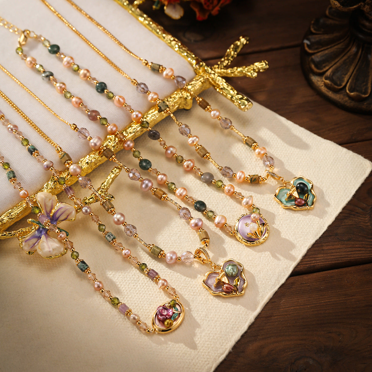 Wholesale Beaded Vintage Drop Glaze Oil Painting Necklace Light Luxury Clavicle Chain