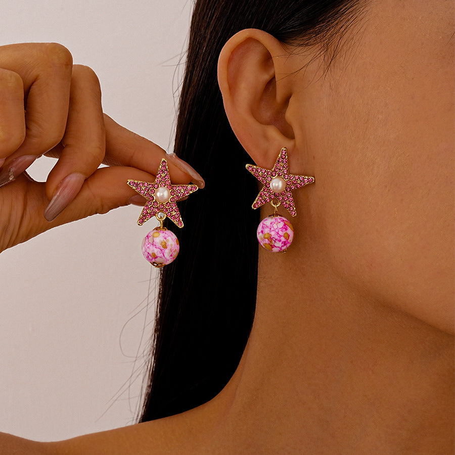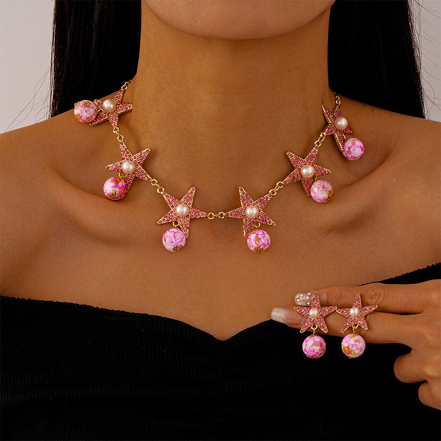 Wholesale Ceramic imitation pearl diamond five-pointed star necklace