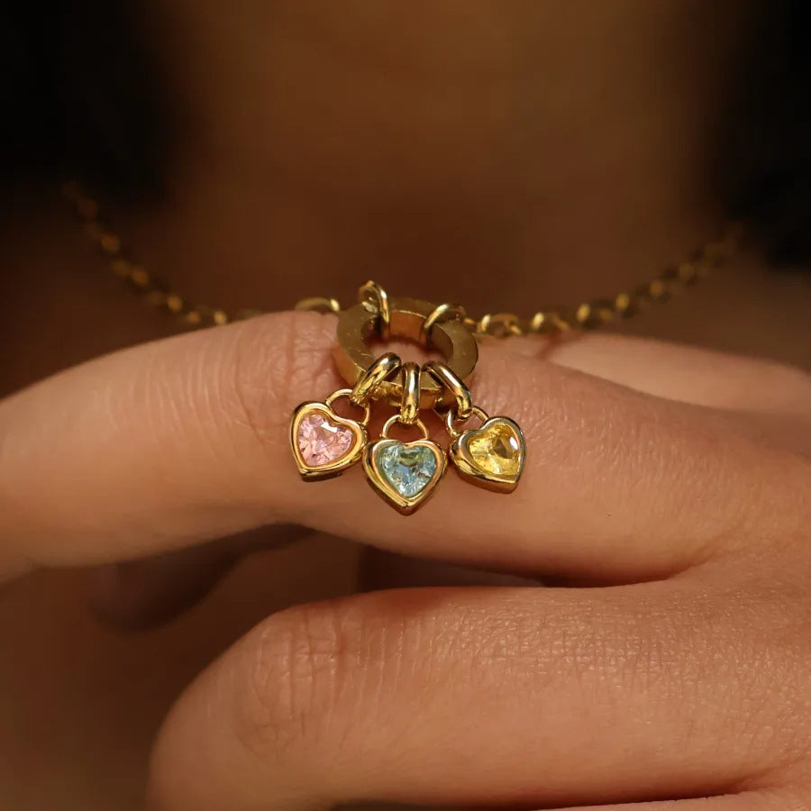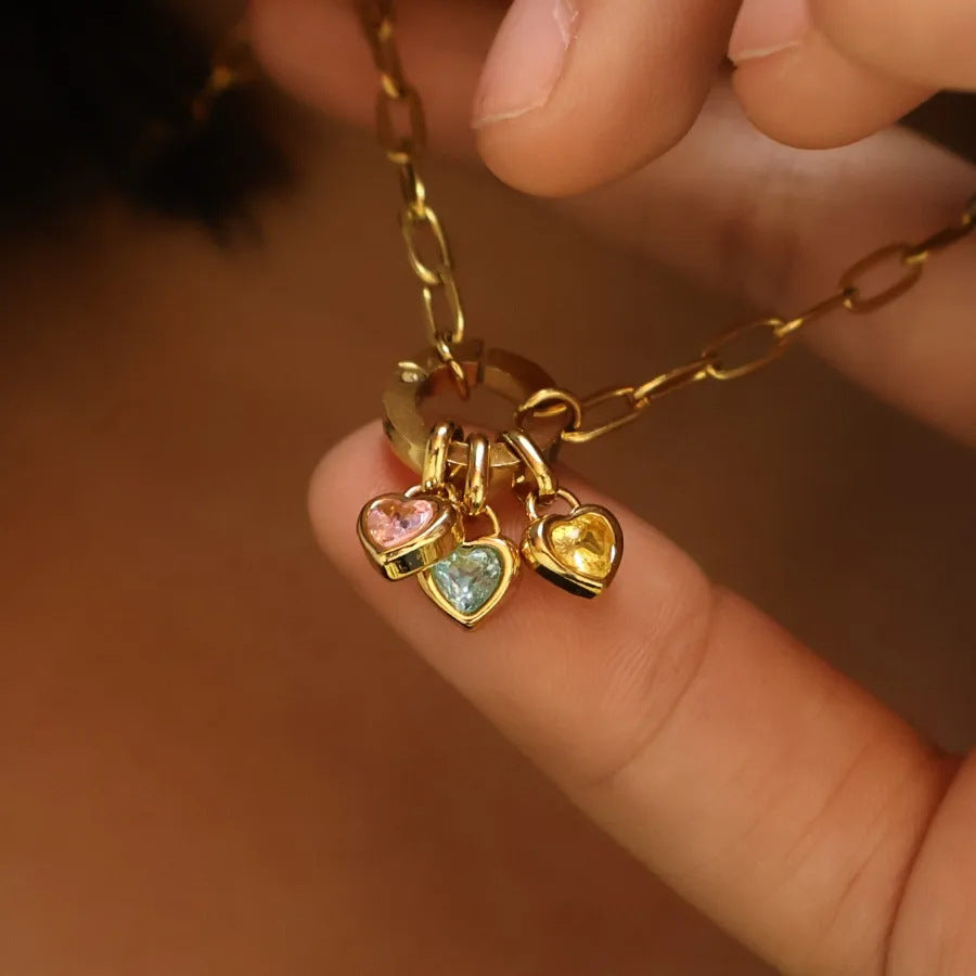 Wholesale Colorful 12 Birthstone Pendant Titanium Steel DIY Accessories Necklace