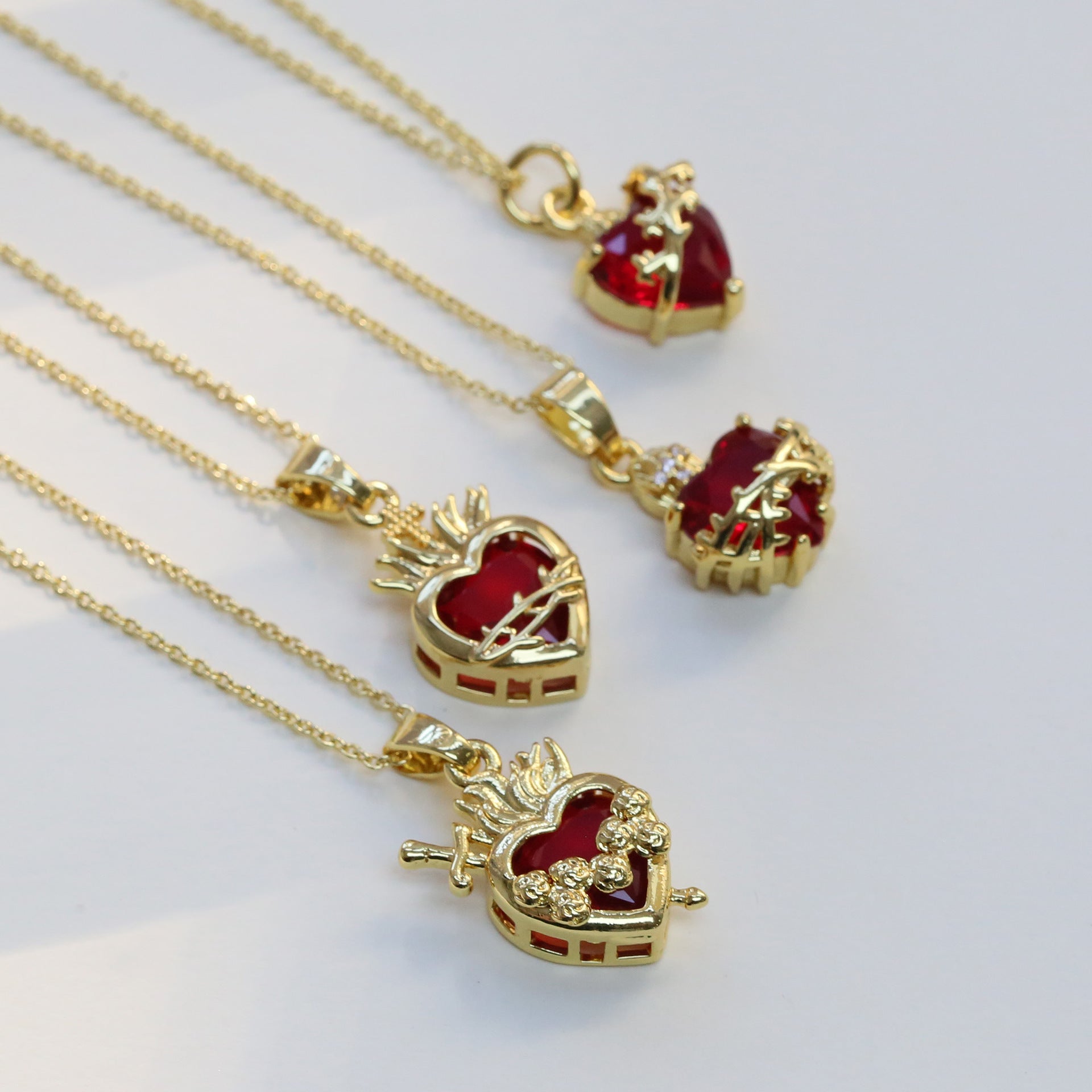 Wholesale fashion brass red heart heart-shaped sacred heart lady pendant clavicle chain