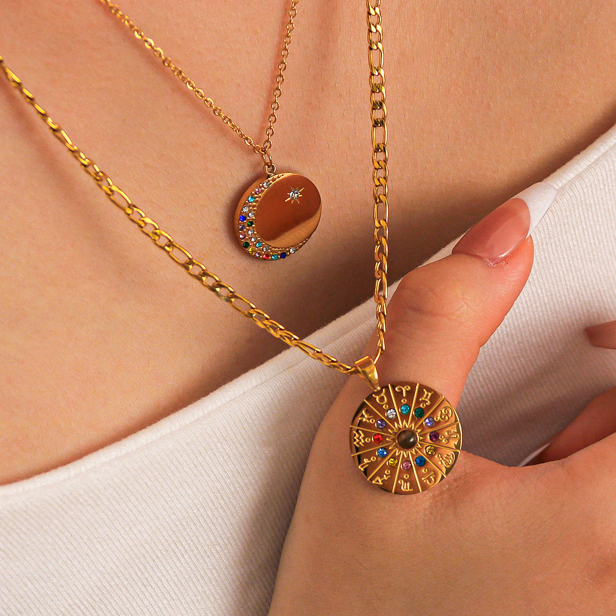 Wholesale Stainless Steel Plated 18K Gold Retro 12 Constellation Pendant Necklace