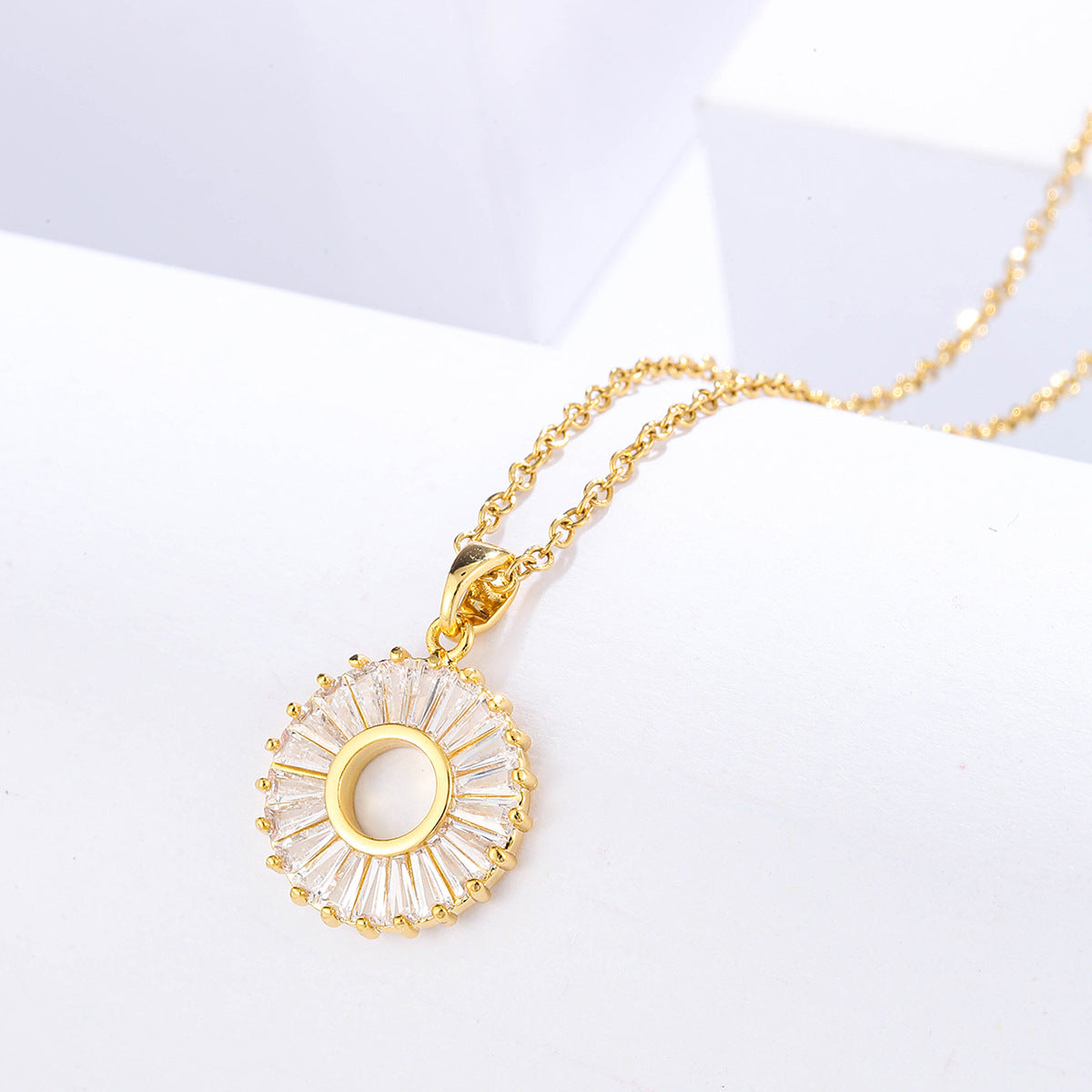 Wholesale Star Wheel Round Full Set Trapezoidal Zircon Pendant O-chain Necklace