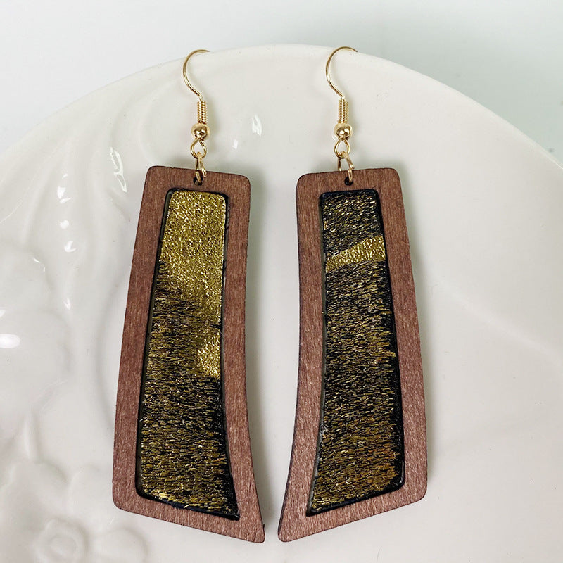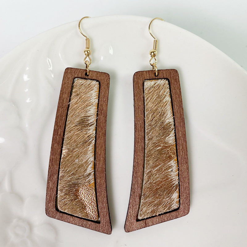 Wholesale 3 pieces of wooden leopard print and cow print leather earrings