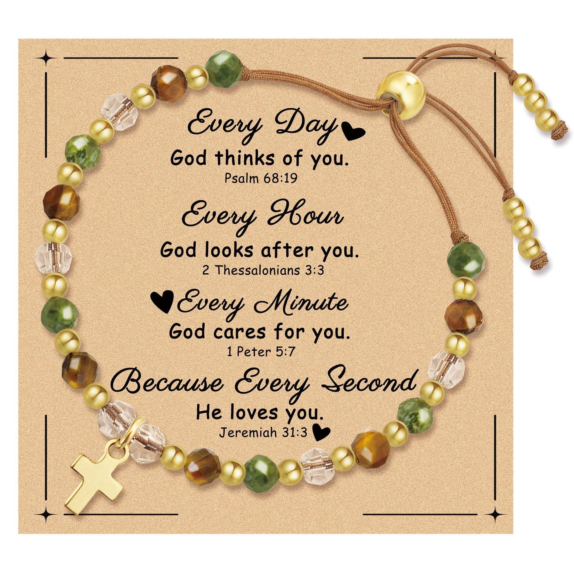 Wholesale 4mm Faceted Natural Stone Gold Cross Pendant Pull Buckle Adjustable Bracelet