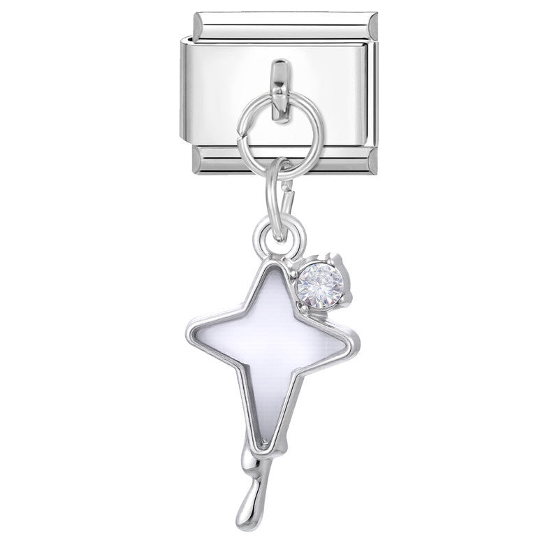 - Steel bottom pendant-white four-pointed star 2 PCS