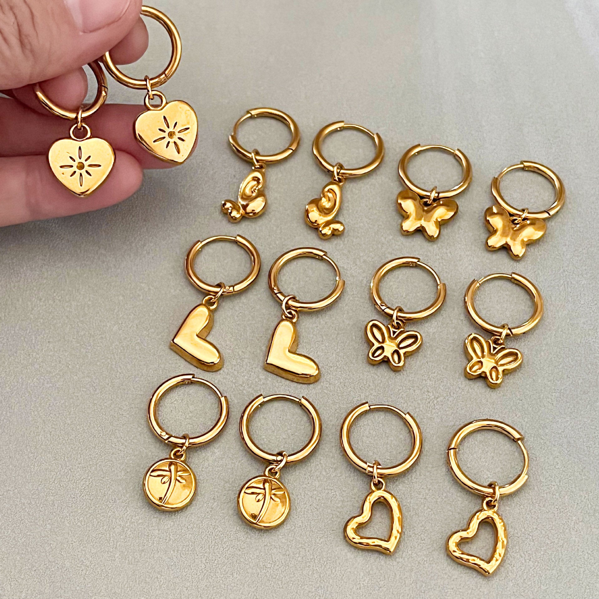 Wholesale hollowed-out personalized design butterfly and heart earrings
