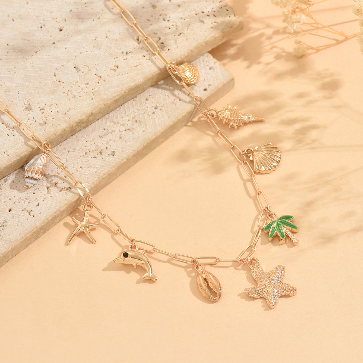 Wholesale Ocean Style Shell Conch Dolphin Multi-Pendant Necklace