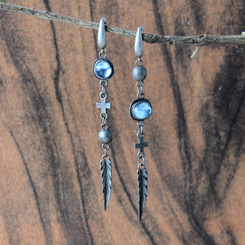 Wholesale Retro Bohemian Style Tassel Feather Pendant Earrings