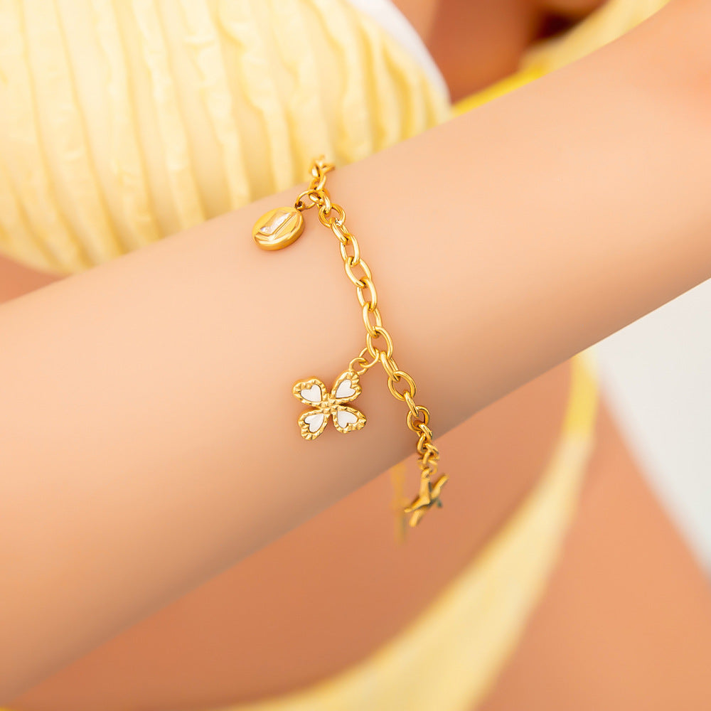 Wholesale Stainless Steel Double-Layer Natural Stone Starfish Pendant Bracelet