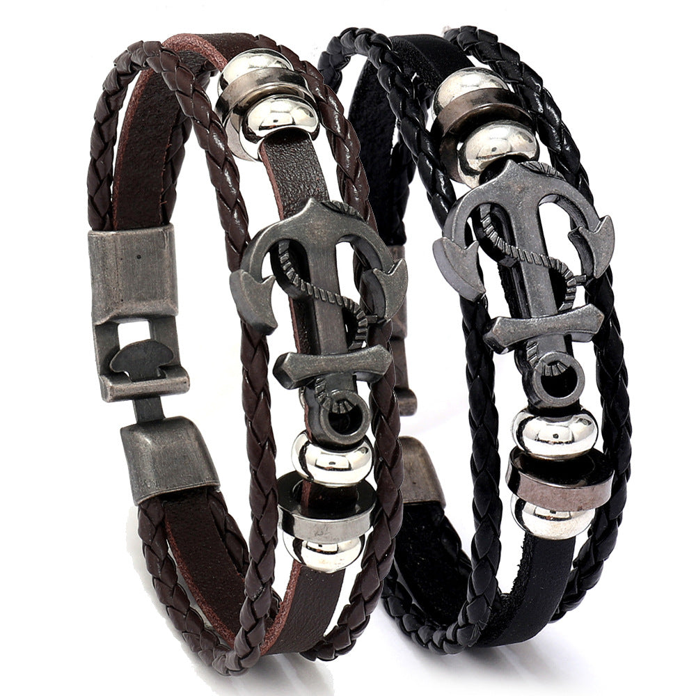 Wholesale Stainless steel leather leaf and turquoise bracelet