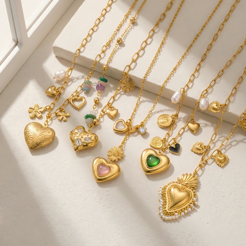 Wholesale Titanium Steel 18K Gold-Plated Heart Chain Necklaces