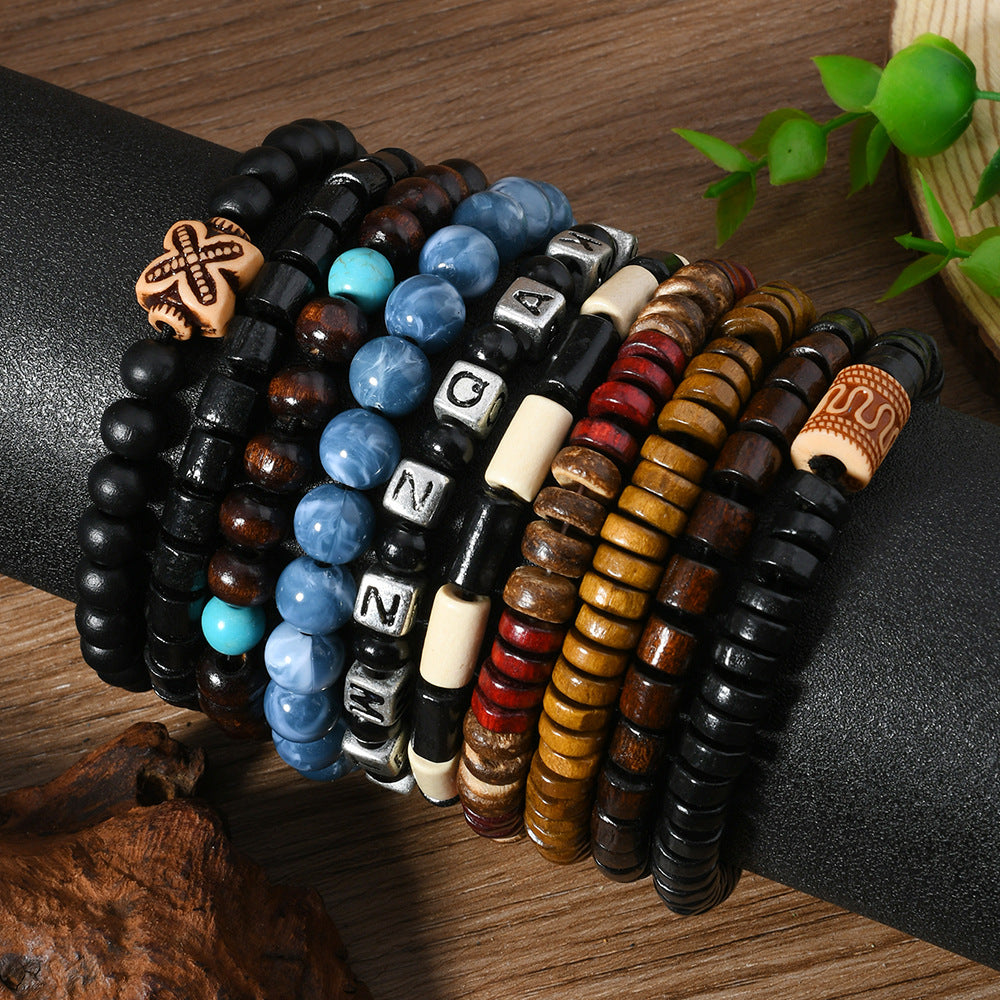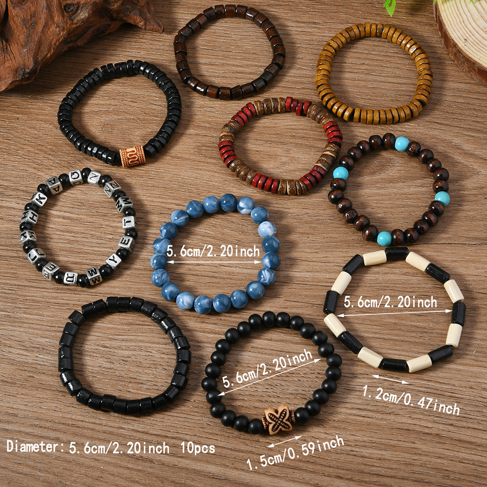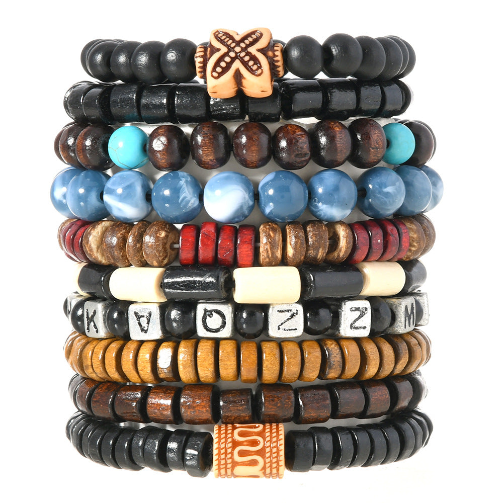 Wholesale Wooden 10-piece set turquoise beaded bracelet