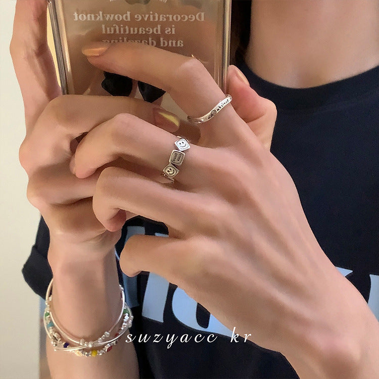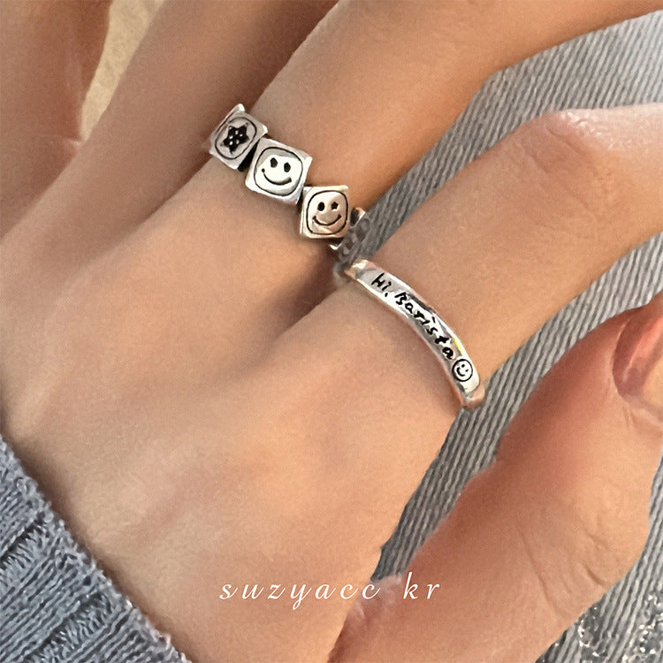 Wholesale S925 Sterling Silver Square Smiley Face Ring