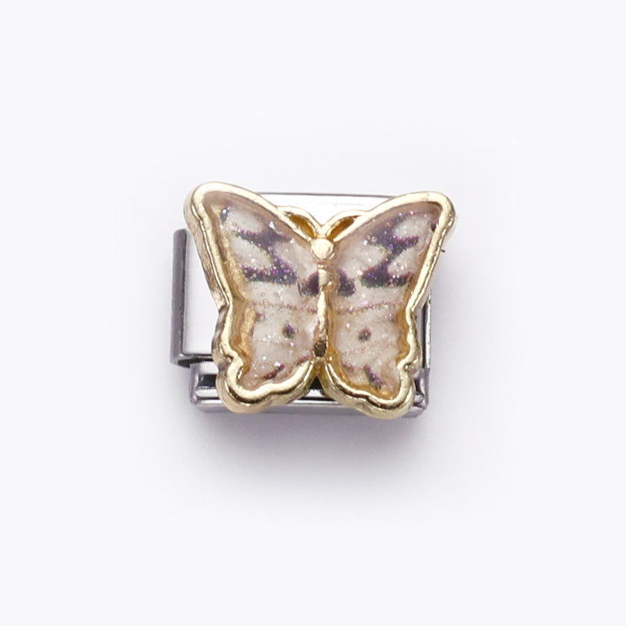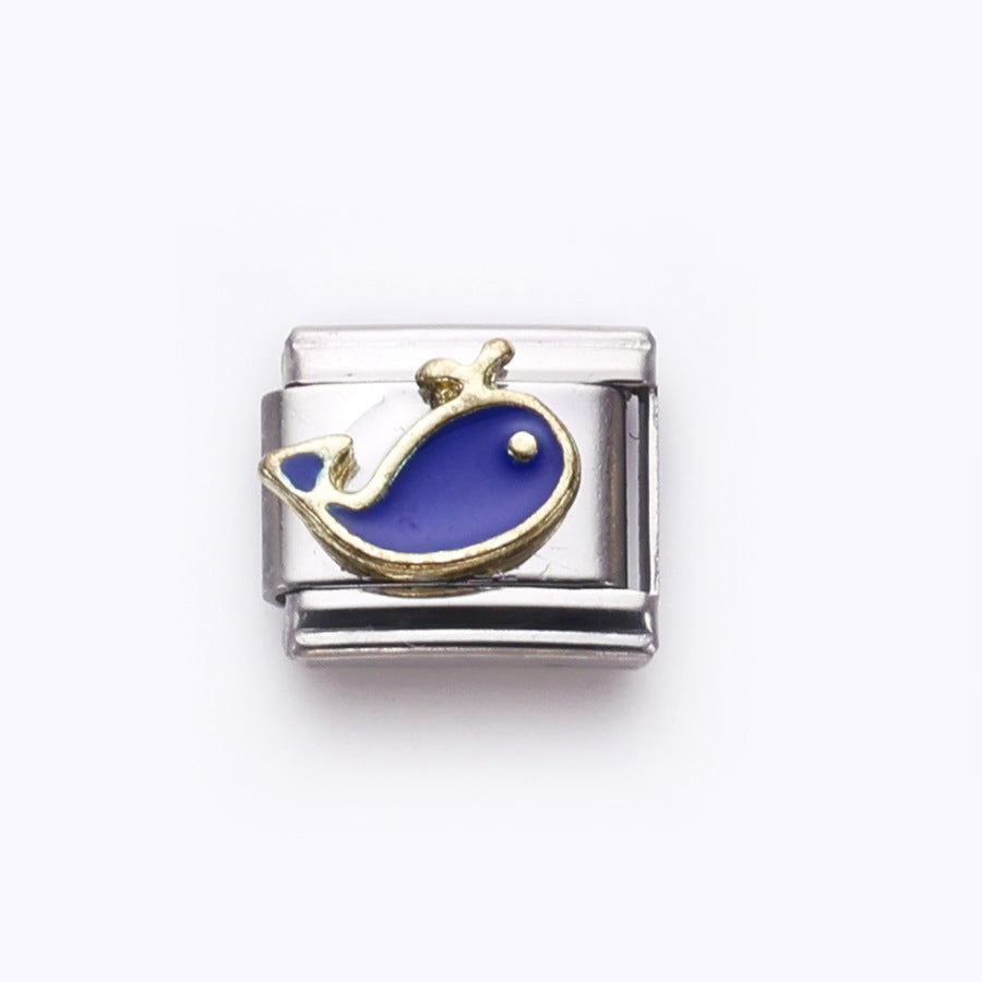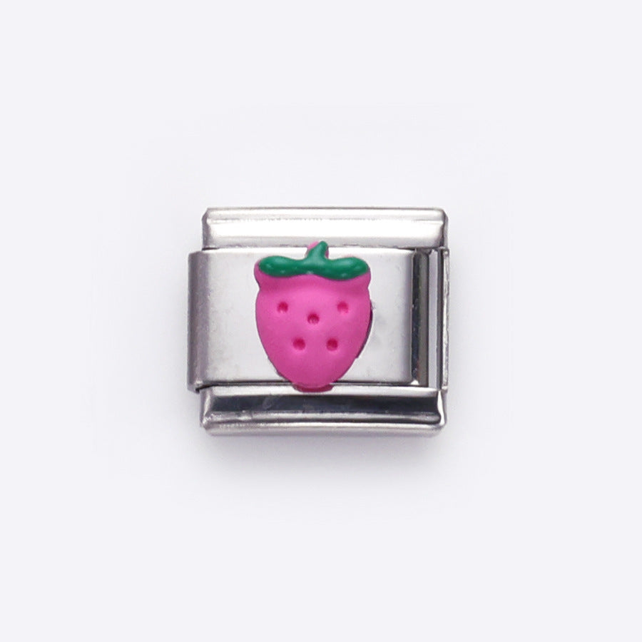 Wholesale 10pcs Italian Charm Bracelet 9mm DIY Splicing Flower Fruit Rainbow Series Stainless Steel Composable Bracelet
