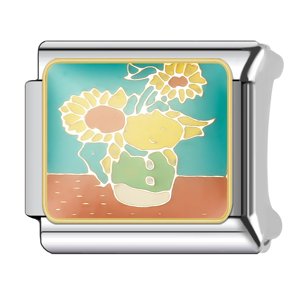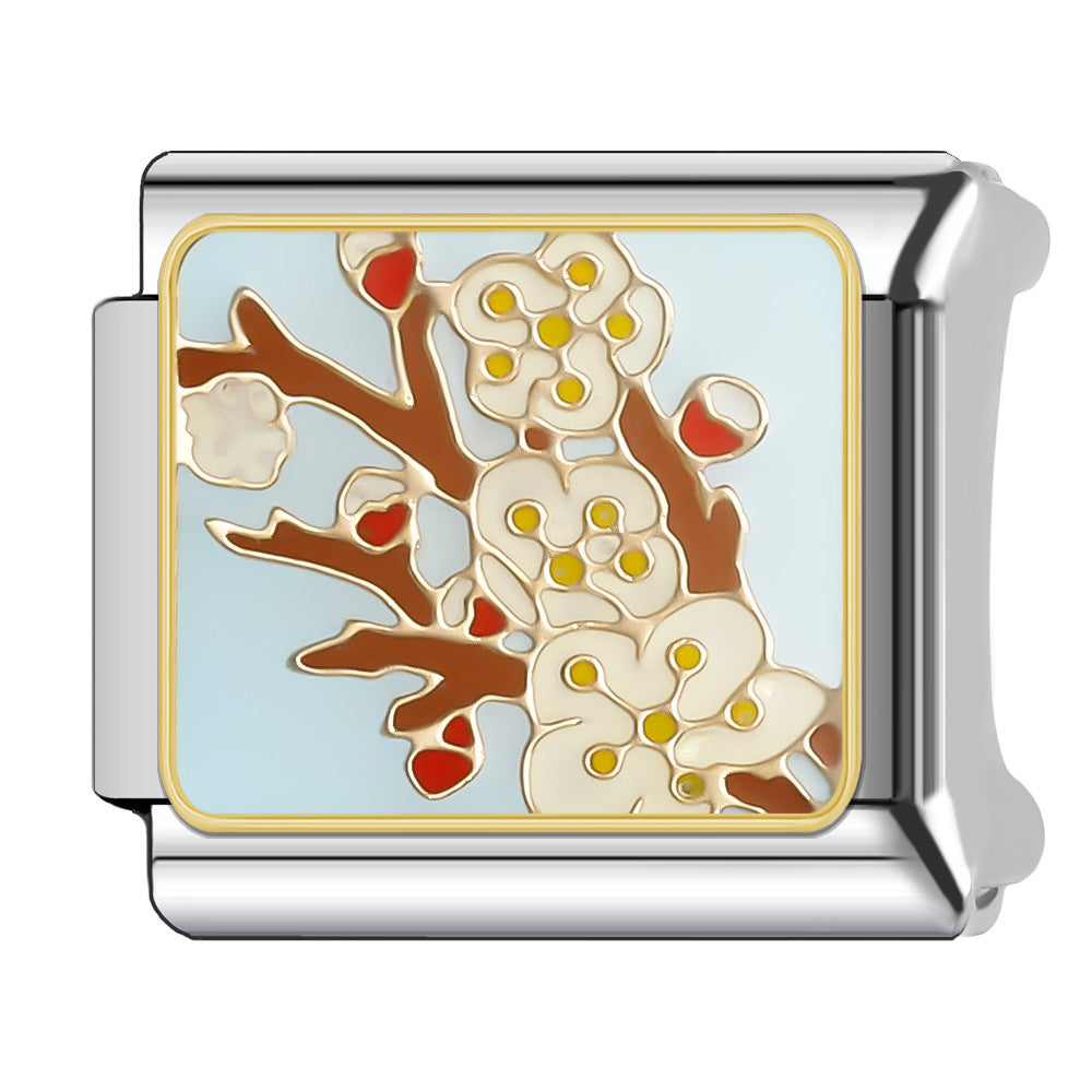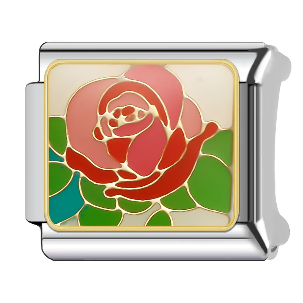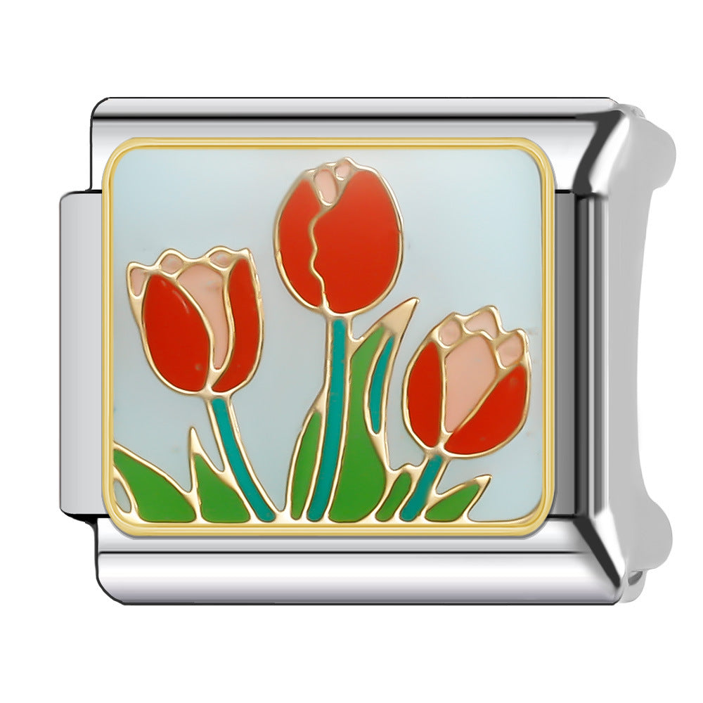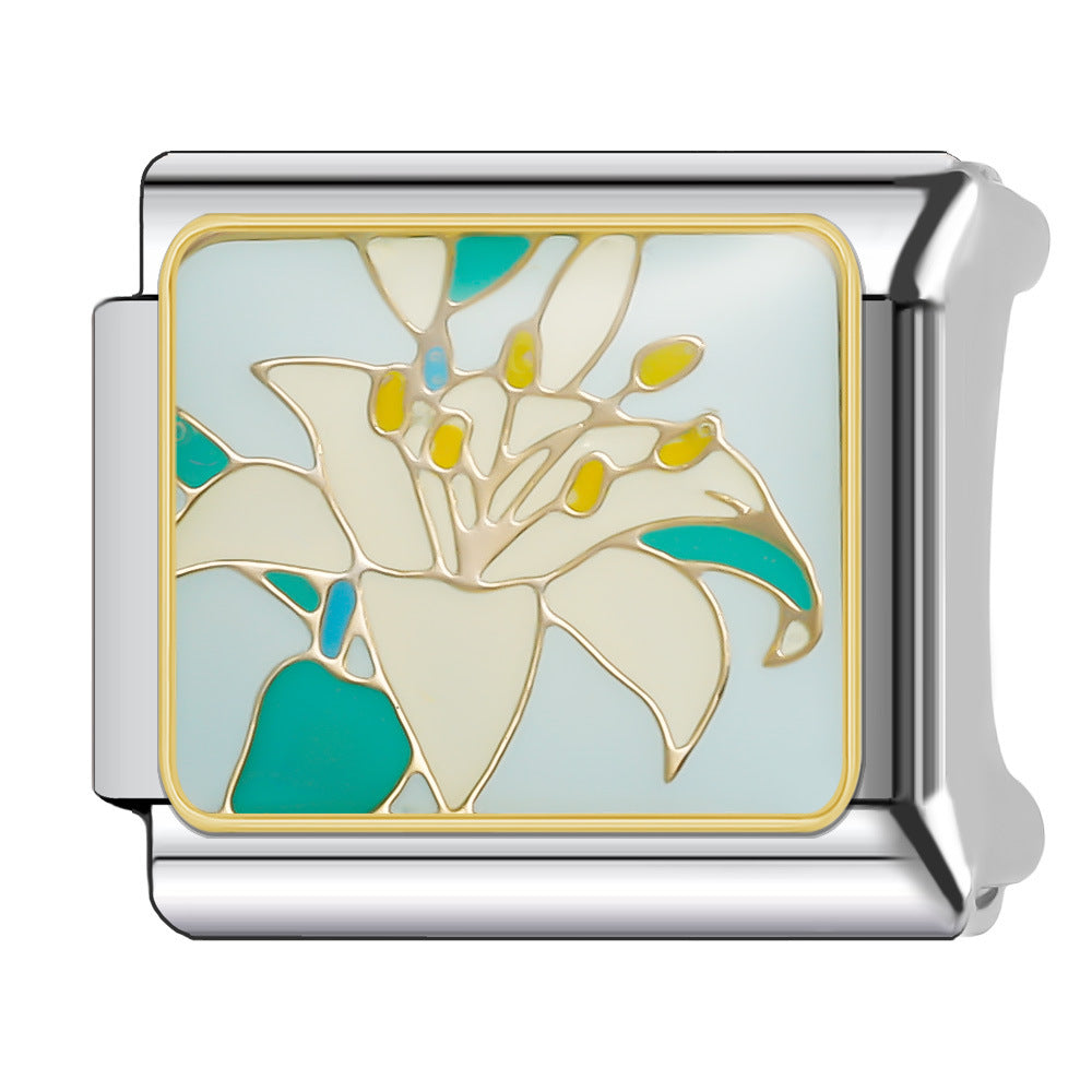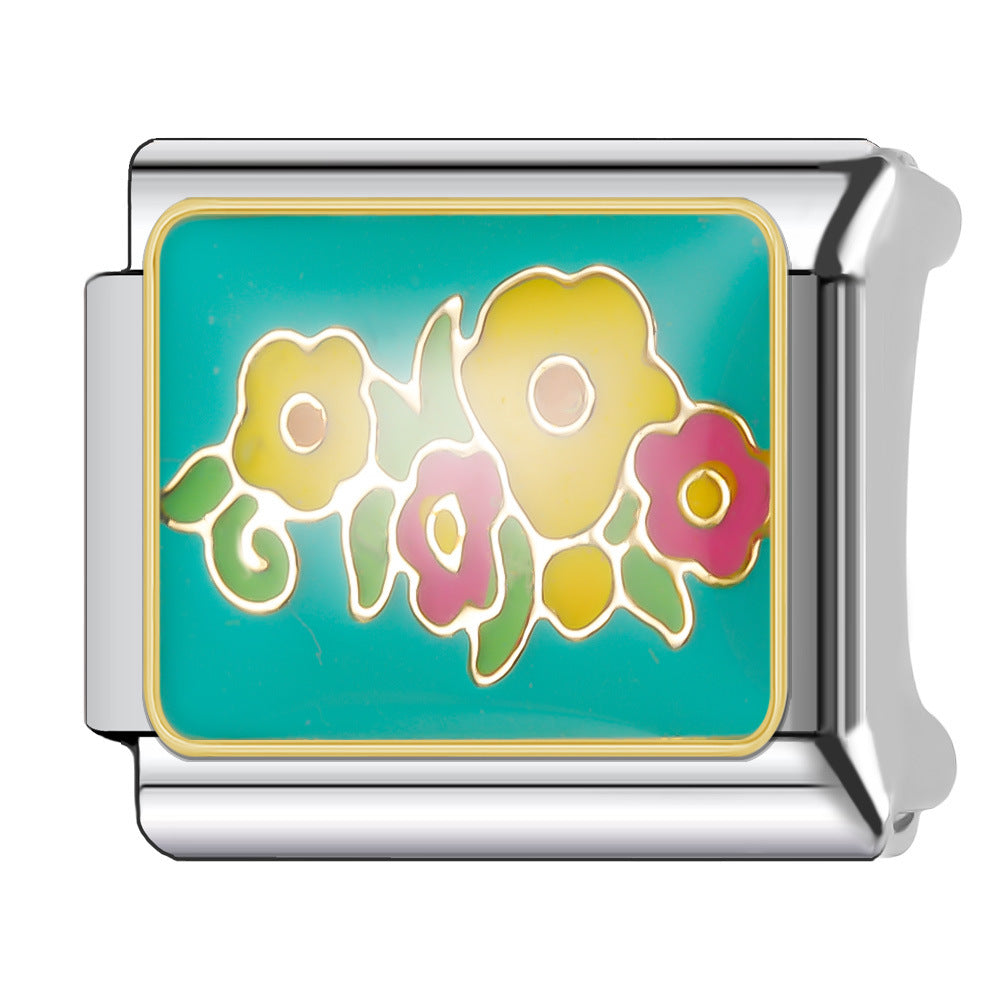Wholesale Italian Charm Bracelet 9mm DIY Splicing Floral Collection Stainless Steel Composable Bracelet
