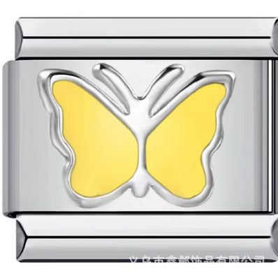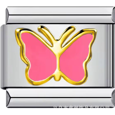 Wholesale Italian Charm Bracelet 9mm DIY Splicing Removable Purple Blue Butterfly Stainless Steel Composable Bracelet