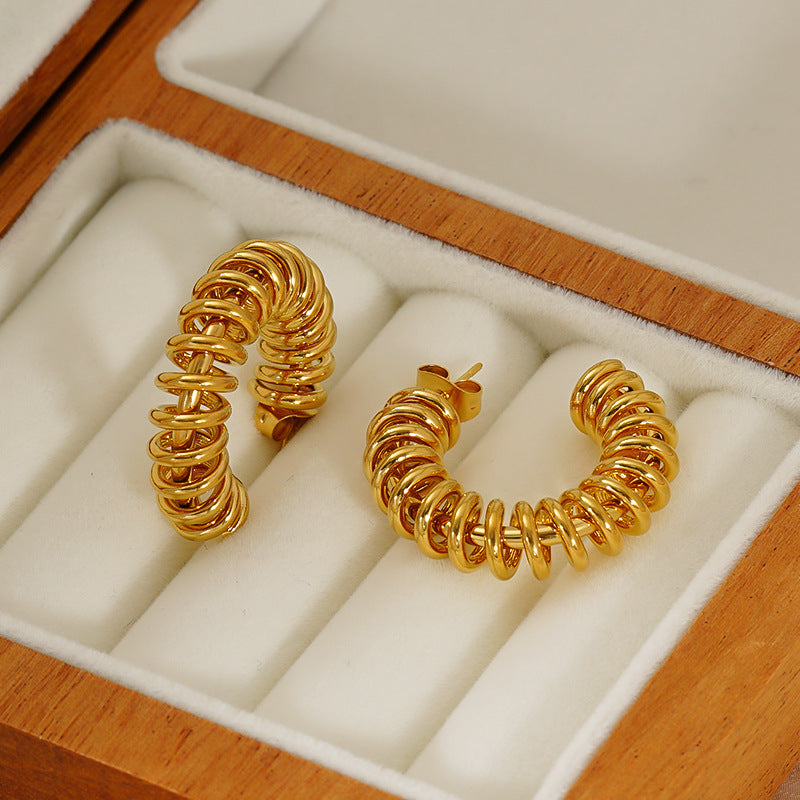 Wholesale Vintage C-shaped 18K gold plated hollow stainless steel earrings